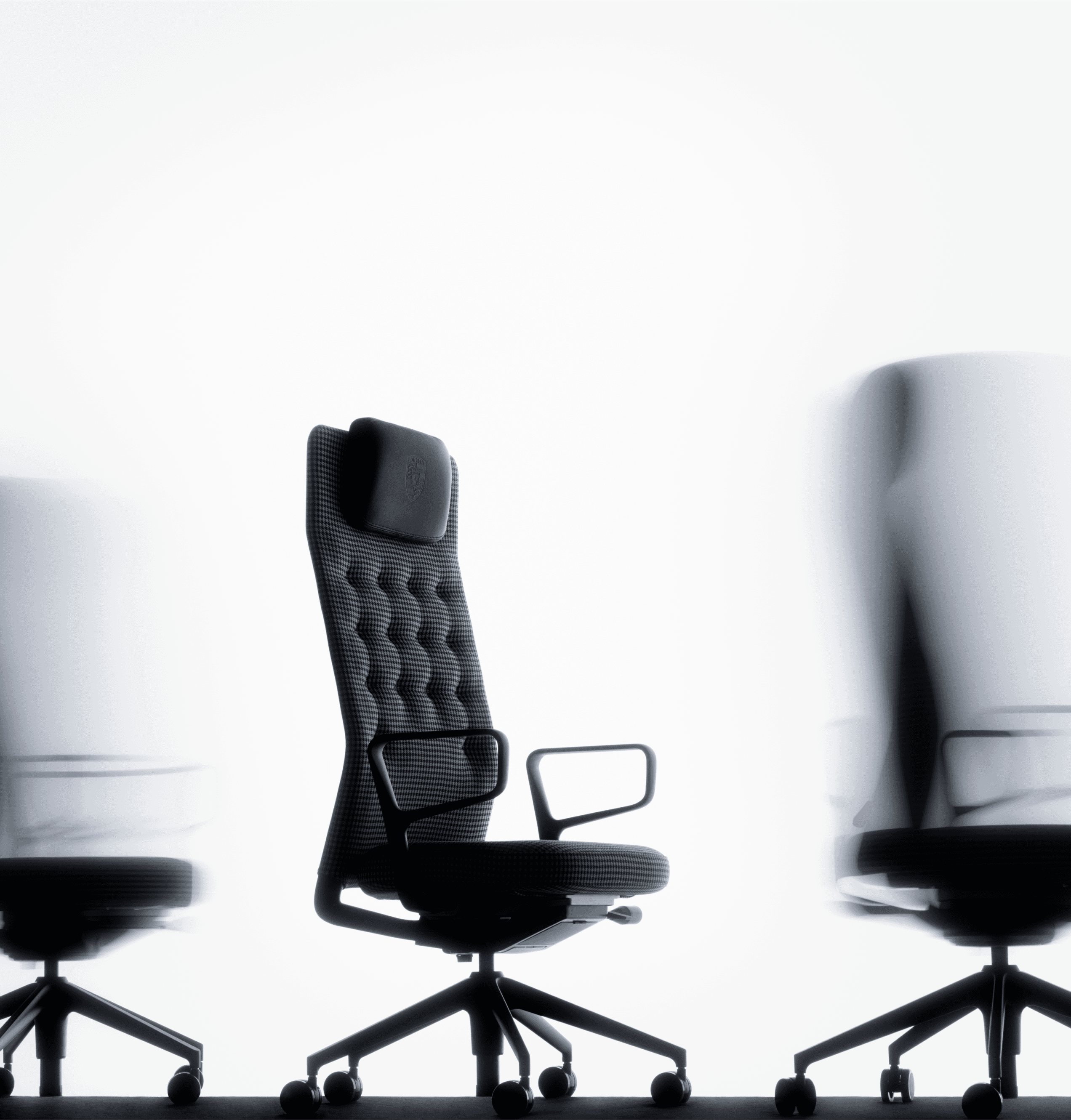 Spending long hours at the desk can put a strain on your body. Enter the ID Trim L Pepita Edition! This exclusive office chair offers maximum comfort with its adjustable lumbar support and the FlowMotion mechanism that allows for extra flexibility and a relaxed posture. Its design is a homage to Porsche: from the Pepita fabric on the seat and back to the leather-covered headrest that is emblazoned with the Porsche crest.