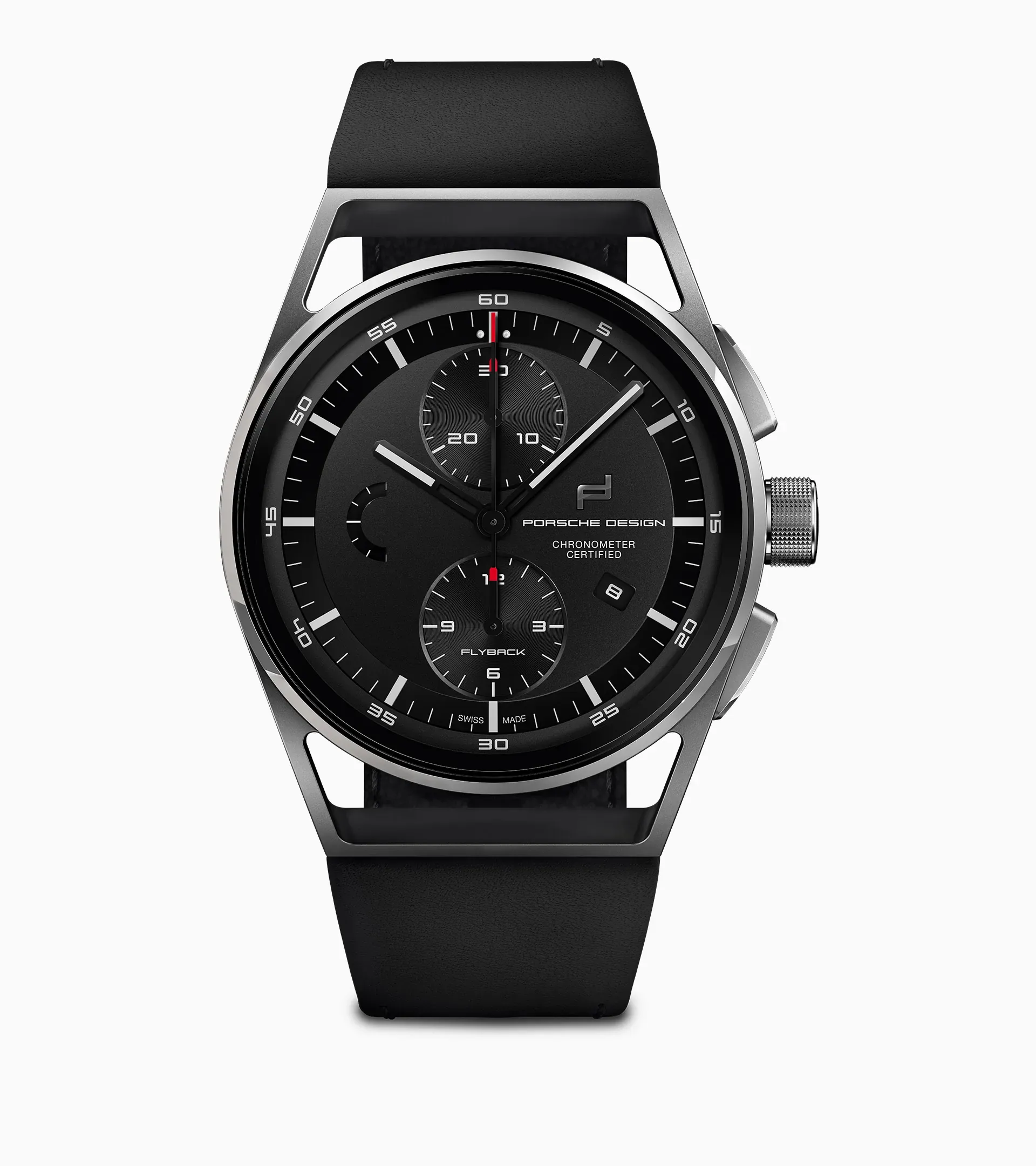 Sportwagengefühl am Handgelenk. Präzision auf Knopfdruck.Abgeleitet vom Porsche 911 hat Porsche Design den 1919 Chronotimer Flyback entwickelt. Dank höchster Funktionalität und klarem Design steht er seinem Vorbild in nichts nach. Angetrieben vom ersten Porsche Design Chronographen Kaliber, WERK 01.200 mit Flyback Funktion, misst der COSC-zertifizierte Chronograph aufeinanderfolgende Zeiteinheiten mühelos. Starten, stoppen und wieder auf null stellen – in nur einem Vorgang. Für maximale Performance wird der 1919 Chronotimer Flyback dabei ausnahmslos aus dem extrem leichten und widerstandsfähigem Titan gefertigt, das bereits seit Jahren im Fahrzeugbau unverzichtbar ist. Auch das Armband, dass aus echtem Porsche Fahrzeugleder gefertigt ist, lässt die Parallele zum Sportwagen spüren.Die gesamte 1919 Kollektion ist ein bestechendes Beispiel für die reduzierte und zeitlose Formensprache von Prof. F. A. Porsche: schnörkellos, puristisch, kompromisslos funktional. Siebenfach entspiegeltes Saphirglas schützt das Zifferblatt, ist kratzfest und beständig und gewährt optimale Ablesbarkeit. Der Gehäuseboden mit Saphirglasöffnung bietet mit dem Blick auf das Porsche Design Kaliber und den P'Icon Rotor ein optisch perfektes Erlebnis. Technik, die sich sehen lassen kann.