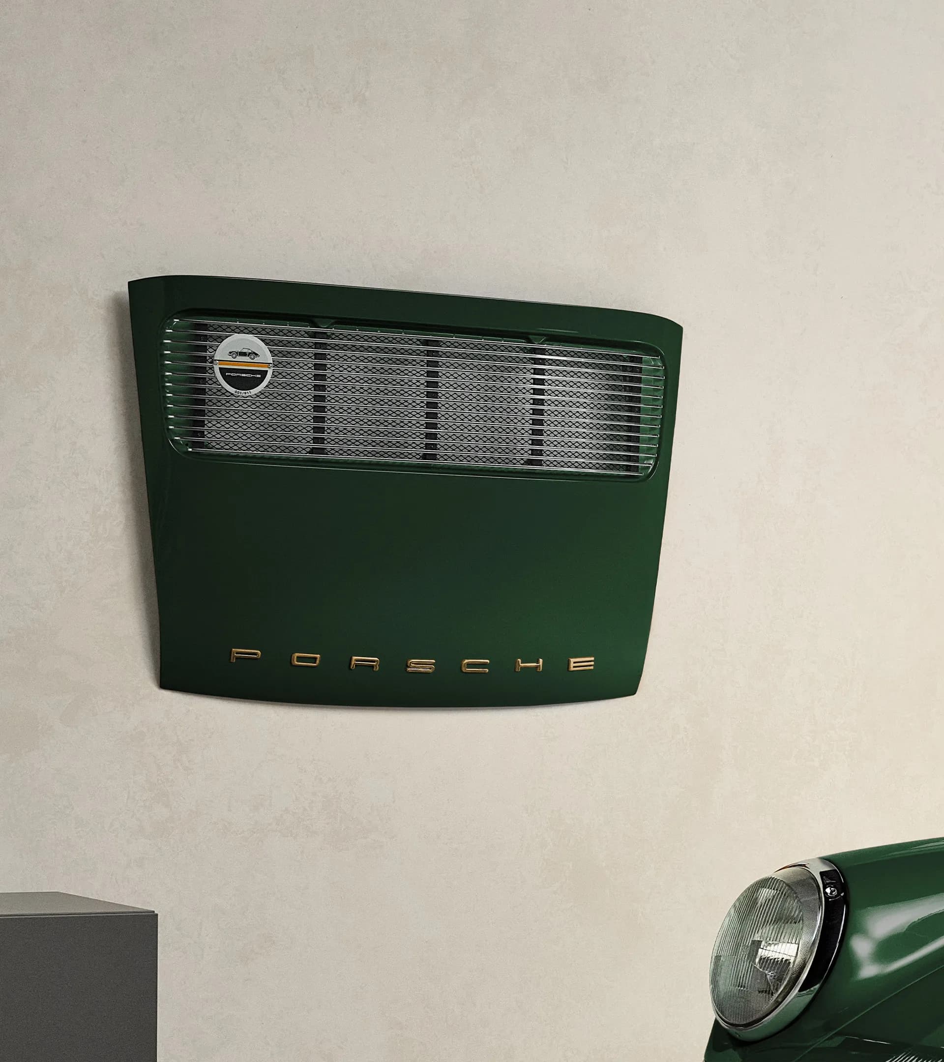 Ein Stück Porsche Geschichte für zu Hause: Der originale Heckdeckel des Porsche 911 (F-Modell) mit originalem Gitter und goldenem Porsche Schriftzug ist eindrucksvolles Dekoobjekt und Magnetwand zugleich. Dank der sechs ikonischen, historischen Porsche Exterieurfarben ist das Stück Automobilgeschichte eine Mischung aus Eleganz und Nostalgie. Jeder Heckdeckel ist mit einem Grillbadge als Limitierungsbadge versehen, das eine durchlaufende Limitierungsnummer sowie eine Abbildung des 911 F-Modells zeigt. Limitiert auf 911 Stück und Made in Germany.
