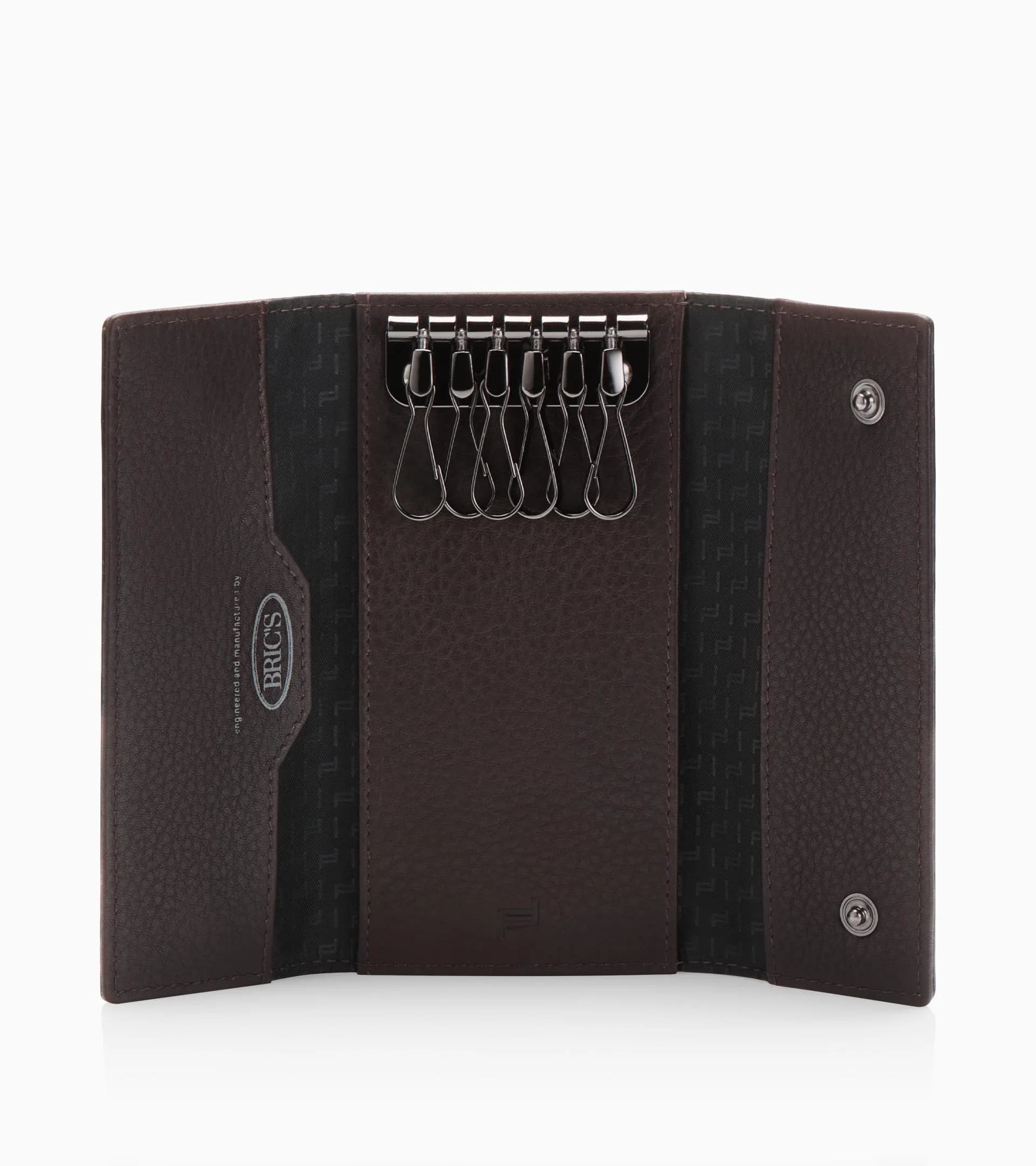 Großes, faltbares Schlüsseletui mit DruckknopfverschlussSechs Karabiner für Schlüssel innenWeiches, genarbtes Leder mit genähten Kanten und Porsche Design Logo-Prägung