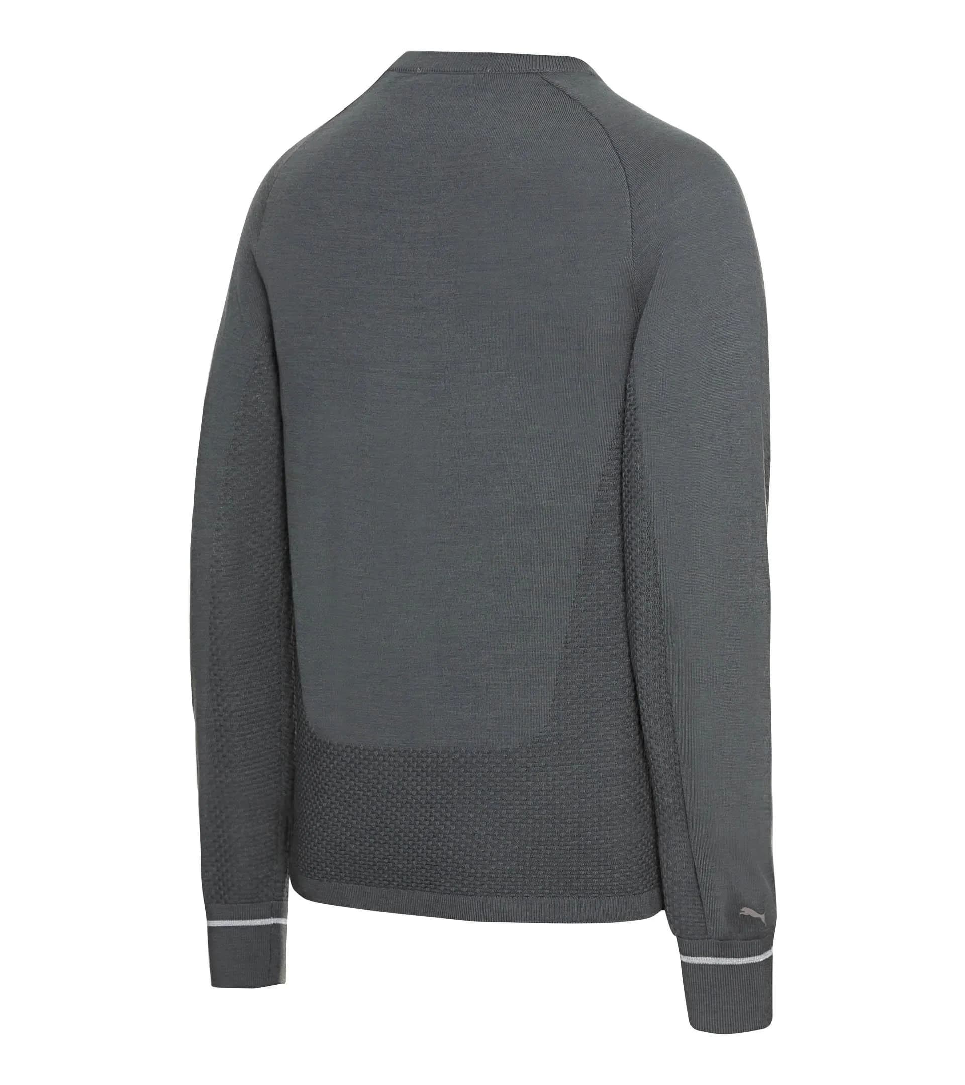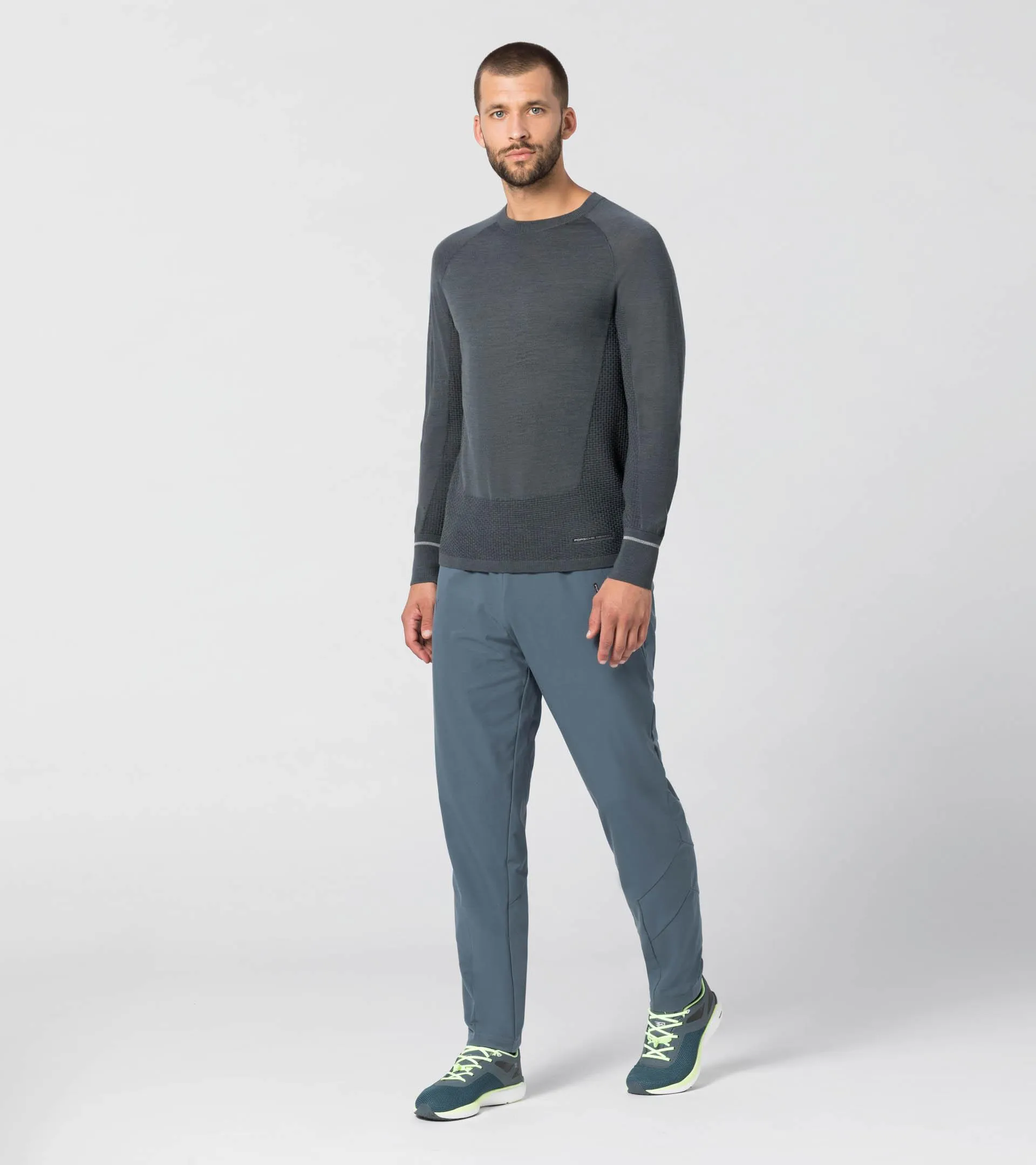 Sportlicher Designer Pullover für Herren mit Rundhalsausschnitt und reflektierenden Details. Atmungsaktiv und passgenau durch evoKNIT® Strick mit Merinowolle.