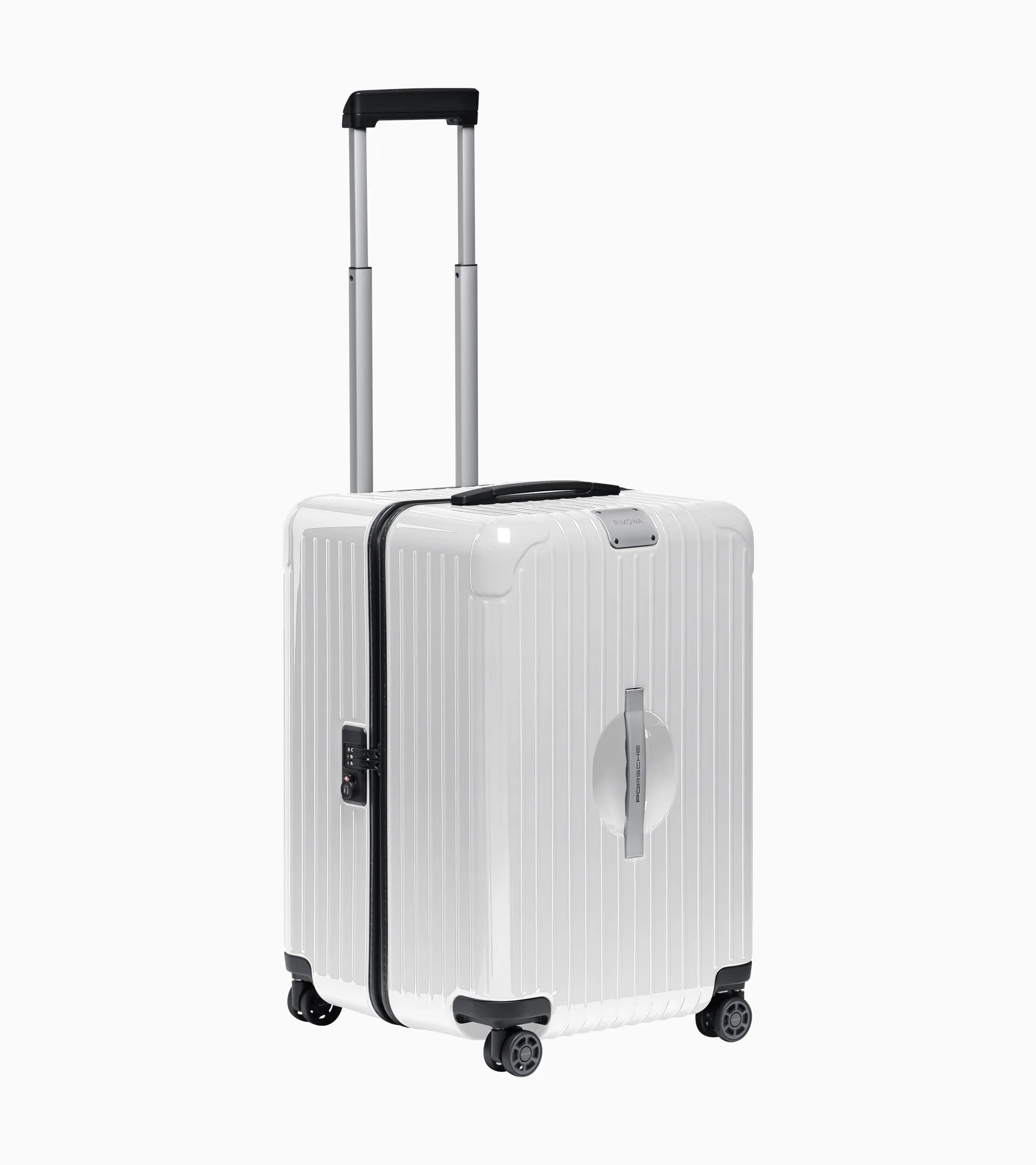 Robuster, ultraleichter Multiwheel® Koffer aus Polycarbonat. Die Kofferschalen reagieren unter Druck elastisch und geben nach. Maße Spezial-Aluminiumgriff zur einfacheren Beladung der Laderäume. Versenktes TSA-Schloss, stufenlos verstellbares Teleskopgestänge sowie Netzabdeckungen mit Reißverschlüssen im Inneren. Innenfutter mit gewebtem PORSCHE Schriftzug.