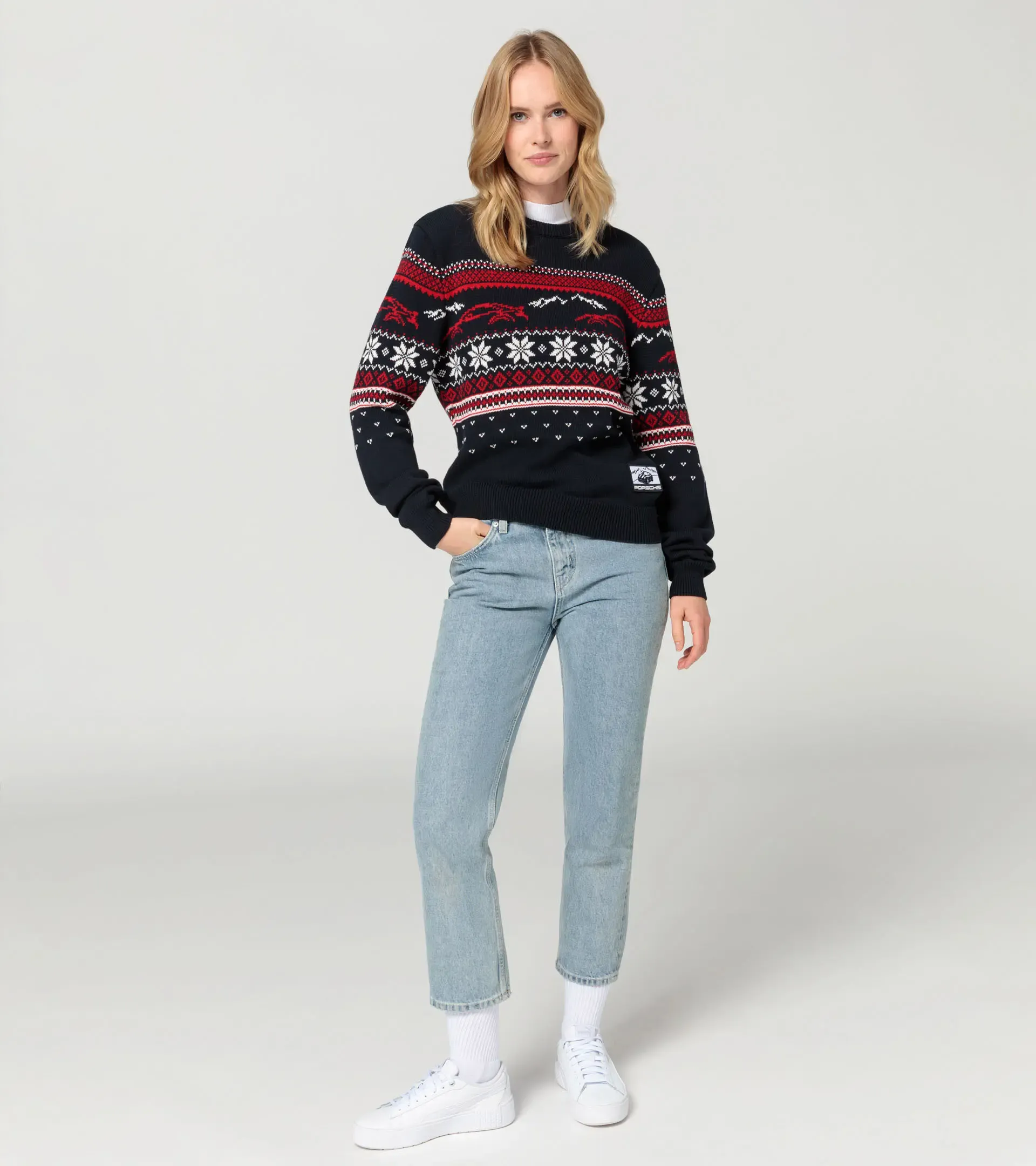 Porsche Style der Saison: Bequemer Unisex Strickpullover mit Rundhalsausschnitt und eingestricktem Christmas Motiv.