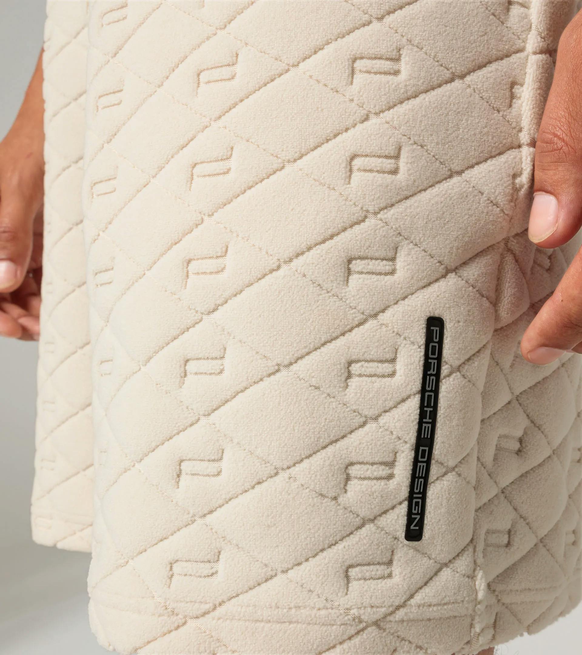 Le style dans toutes les fibres : ce short extrêmement doux et aéré en tissu éponge est un véritable atout visuel avec le motif all-over de l’icône Porsche Design en relief, mais il se distingue également par un confort exceptionnel grâce à sa taille élastique avec cordon de serrage.
