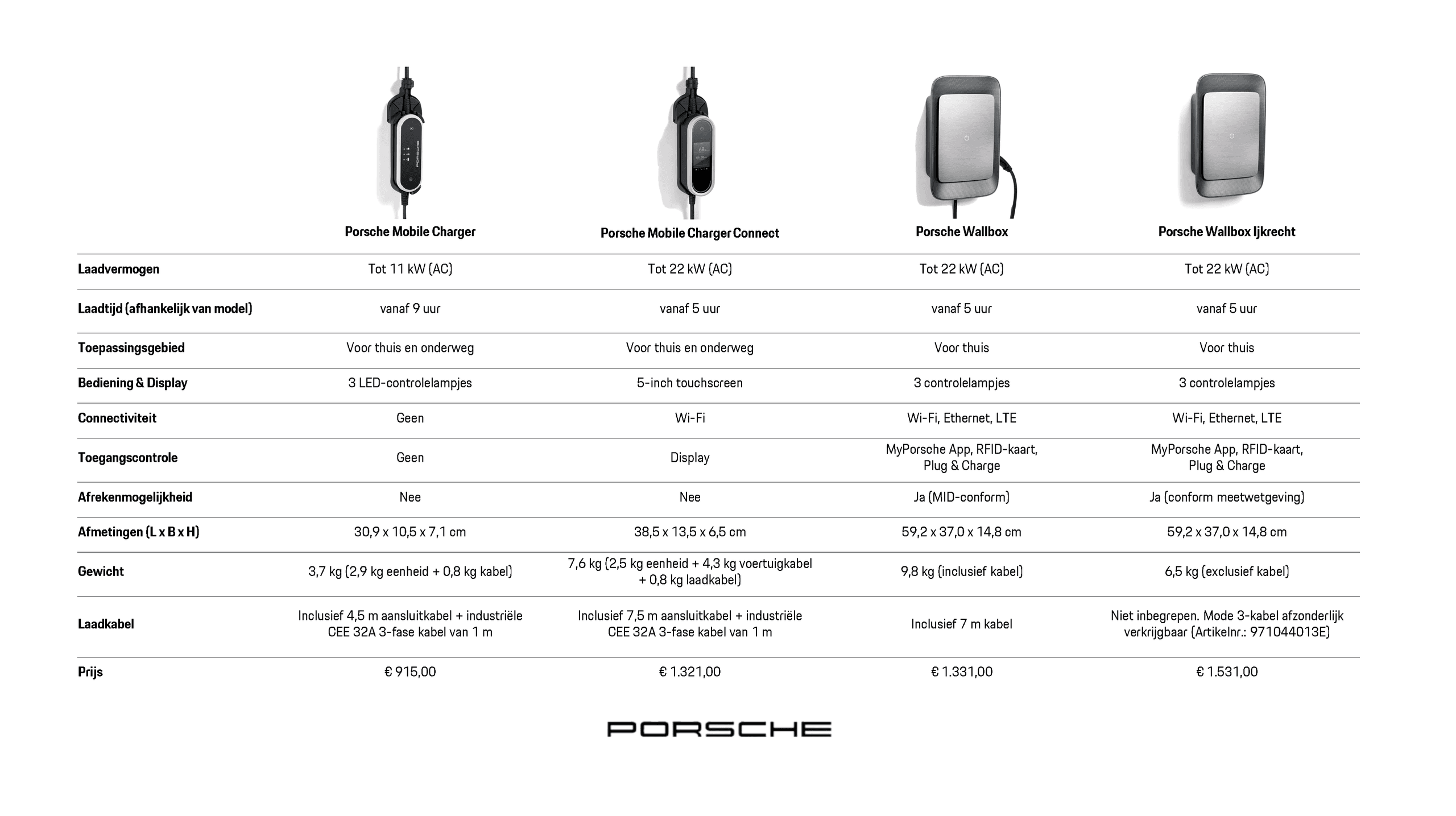 Voor alle Porsche plug-in hybride en elektrische voertuigen