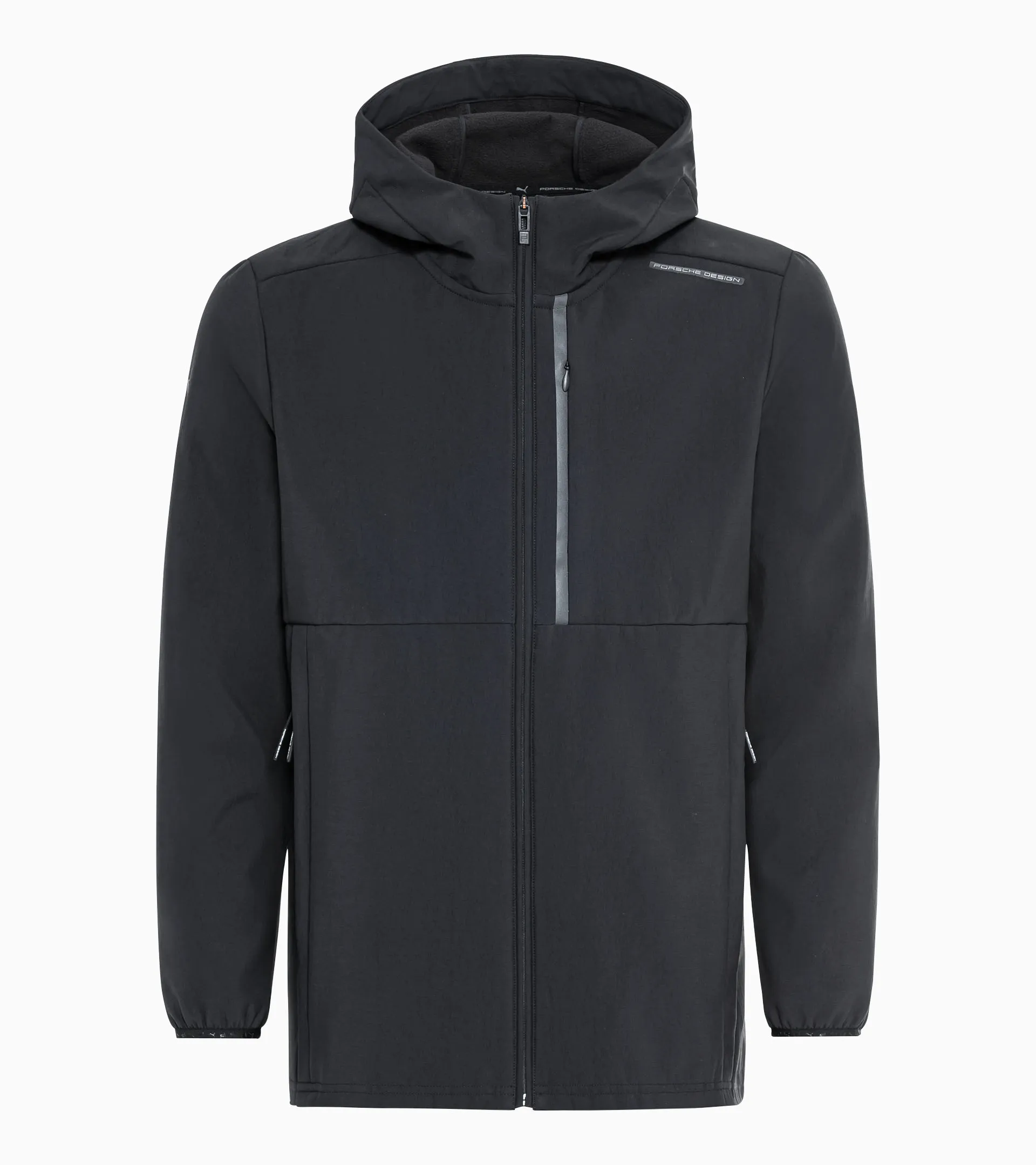 Een multifunctionele perfecte combinatie van stijl, bescherming en duurzaamheid: de Porsche Design Softshell Jacket is de perfecte jas voor het voor- en najaar en voor actieve outdoor-uitstappen. Het geheim zit in het materiaal: CORDURA®, met zijn stevige stofstructuur van gerecycled polyamide, is slijtvast, waterafstotend en sneldrogend en voelt prettig aan om te dragen. Binnenin is het materiaal opgeruwd voor een zacht en nog comfortabeler gevoel. Gecombineerd met het technische ontwerp en de strakke look, met een verstelbare capuchon en dynamische lijnen, is het resultaat een jas die even functioneel en comfortabel als stijlvol is. De afgedekte, rubberen ritssluiting aan de voorkant met dubbele bies, reflecterende details en zijzakken met ritssluiting met Porsche Design-labels benadrukken het sportieve gevoel en het erfgoed van de jas.