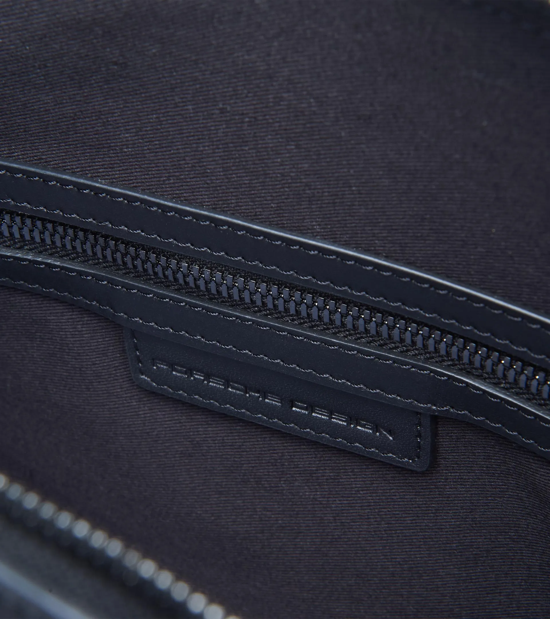 Small Porsche Design briefcase in carbon and leather. The high-quality features of this business bag are extensive, including laptop compartment and trolley link.
