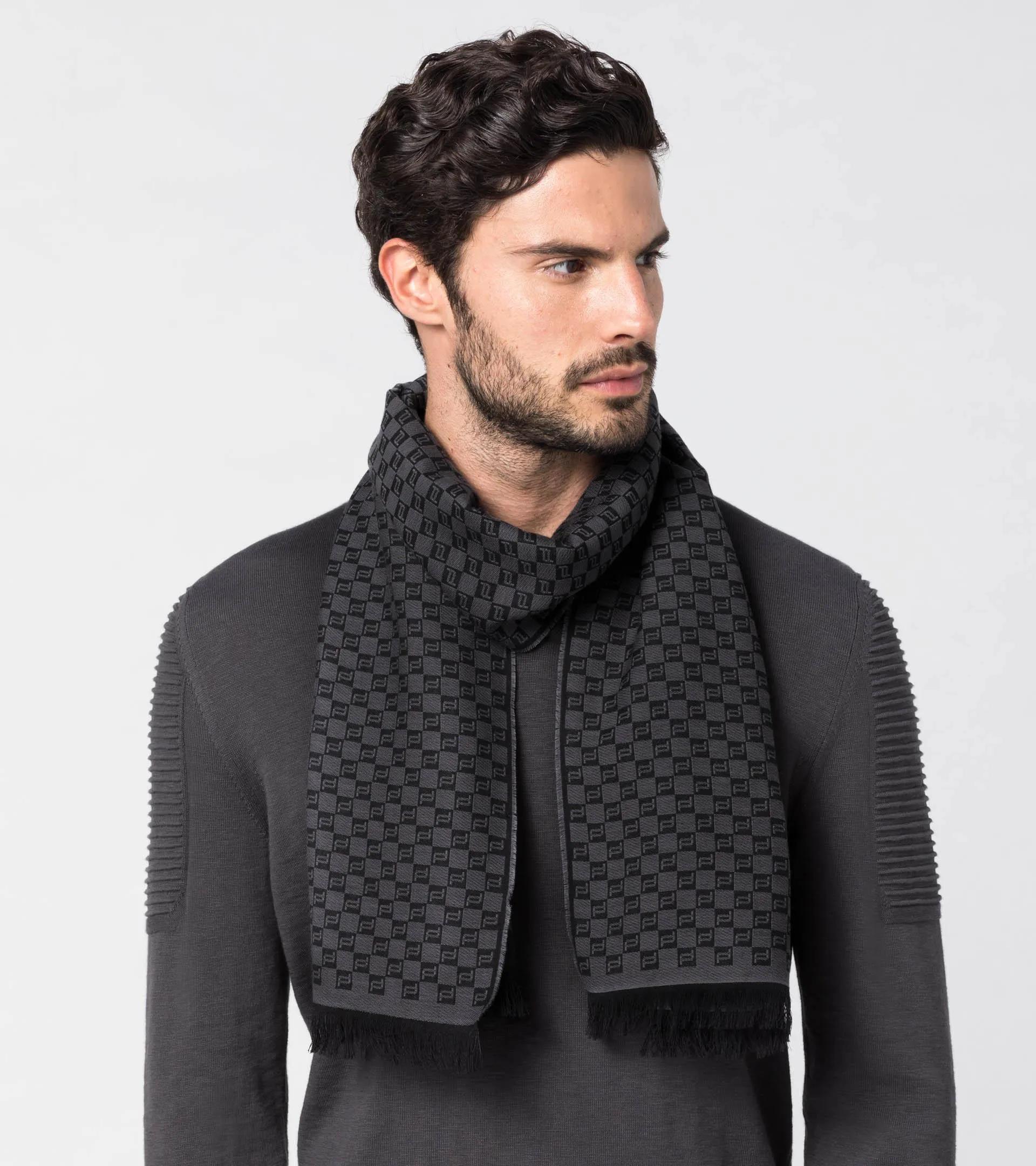The men's accessories for the limited 50Y Porsche Design Collection: woven men's business scarf made from silk and modal with an exclusive jacquard pattern.