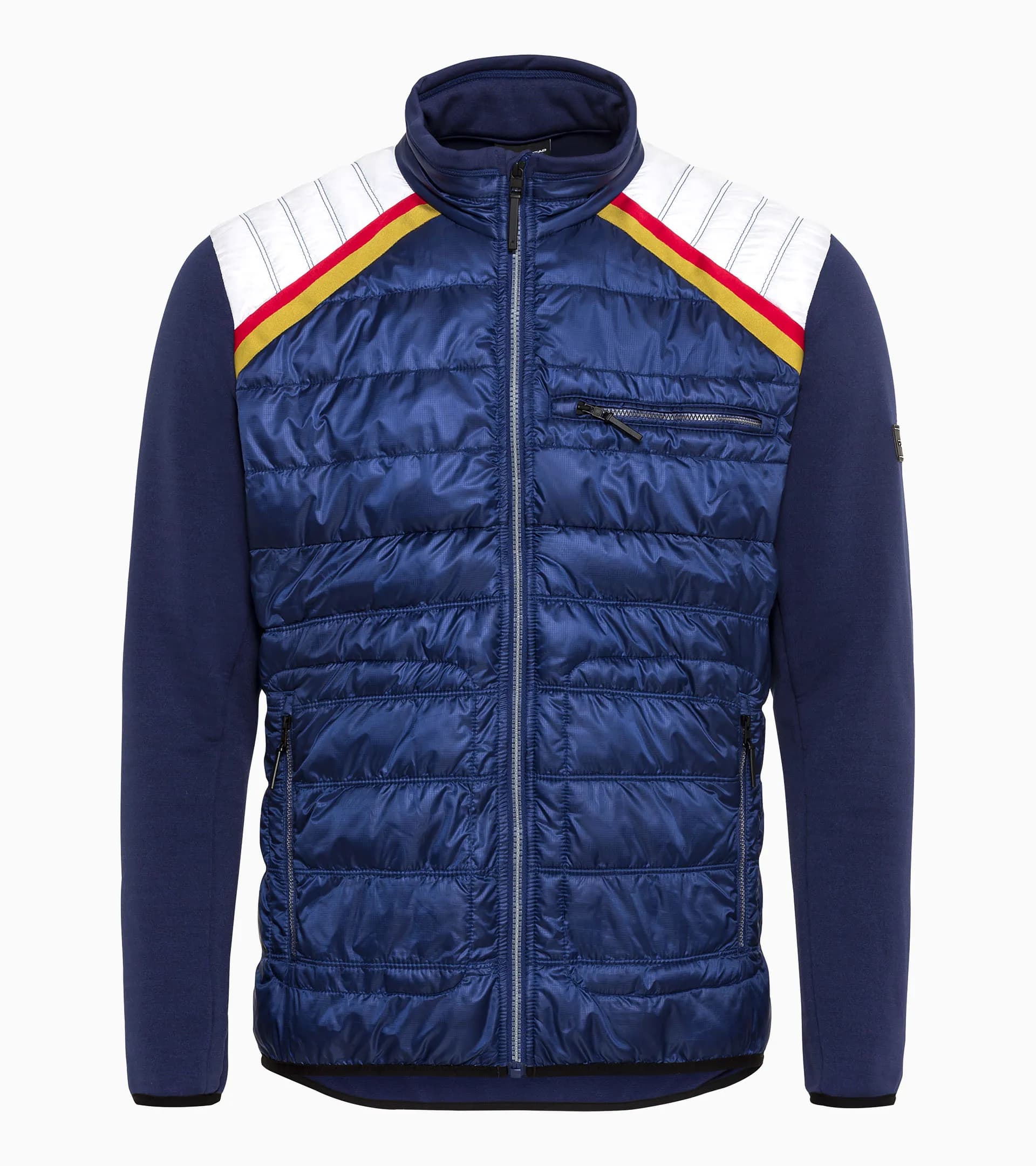 Exclusive men's PORSCHE HEAD midlayer jacket. With warm lining and body-mapped stretch sleeves and back.