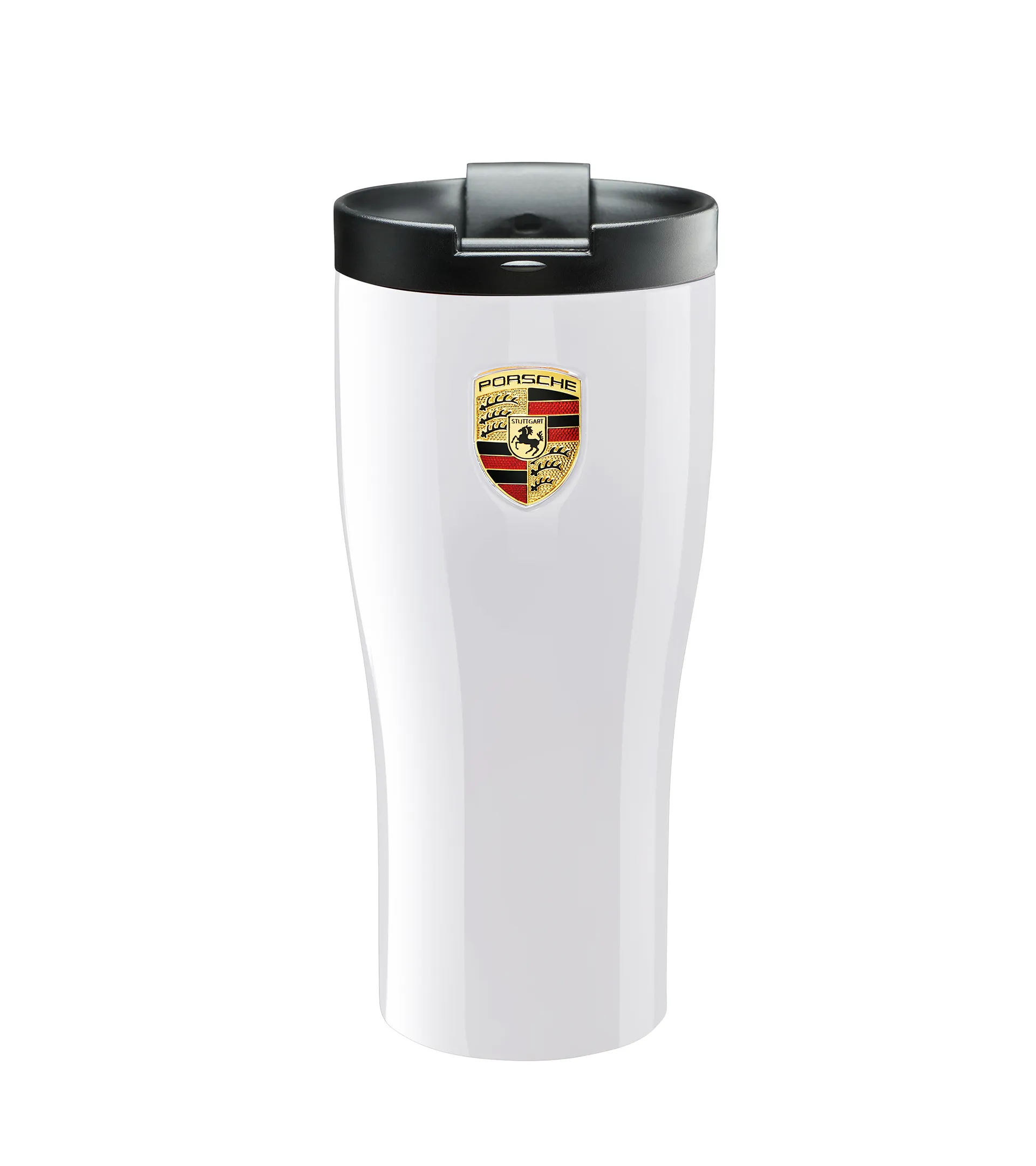 Performance on cold and warm days: the double-walled Porsche thermos cup made of stainless steel keeps hot beverages warm and cold beverages cool. The body of the mug is adorned with the Porsche crest, the lid has an embossed Porsche logo and is also 100% leak-proof. This makes the cup, with a capacity of approx. 460 ml, the ideal companion for on the go. Also ideal as a gift for any Porsche fan thanks to the high-quality packaging.