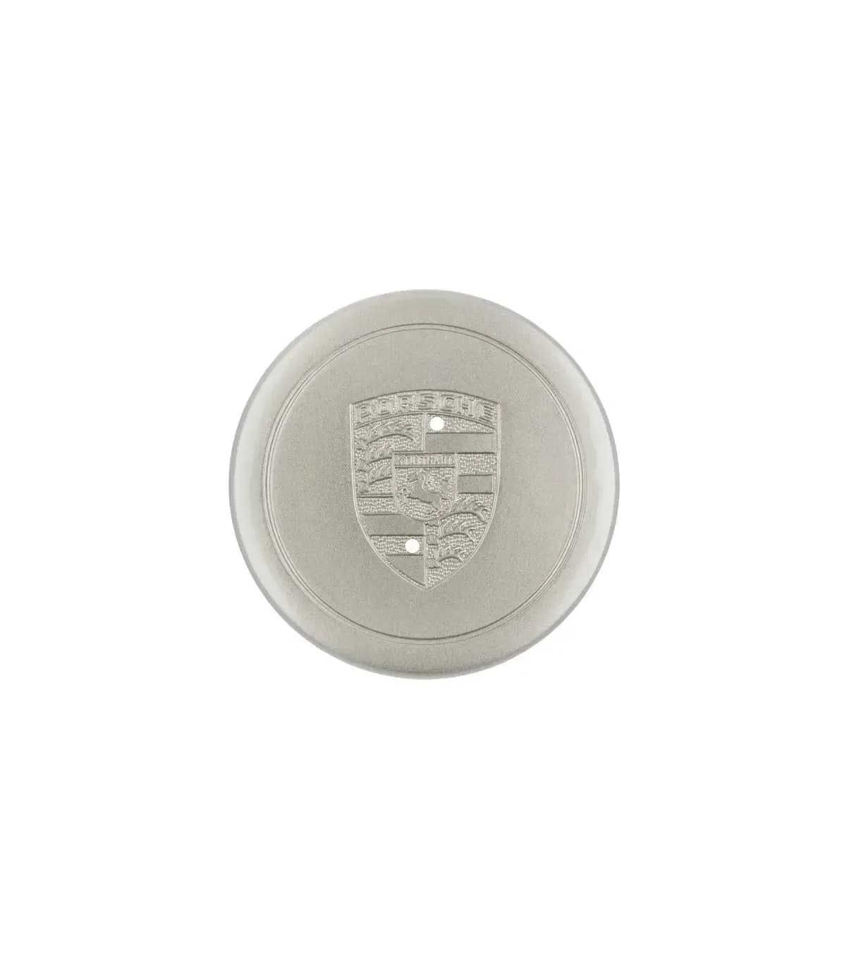 White Gold Metallic hub cap for internal diameter of 71 mm with Porsche crest.