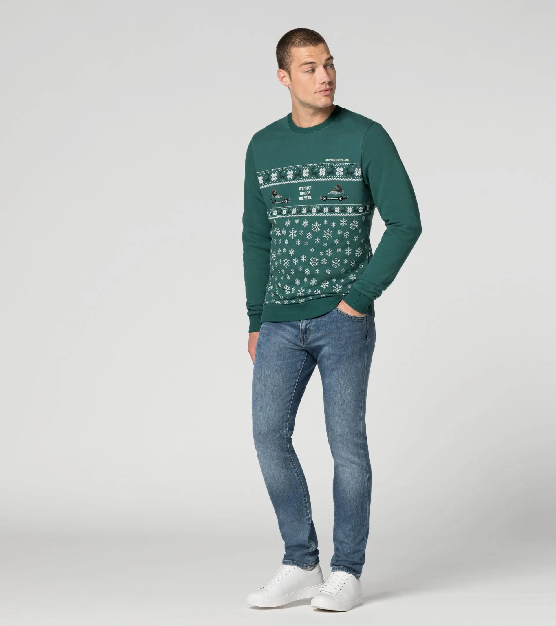 Porsche style of the season: the casual unisex sweater with a Christmas print. High quality, warm and soft. Regular fit.