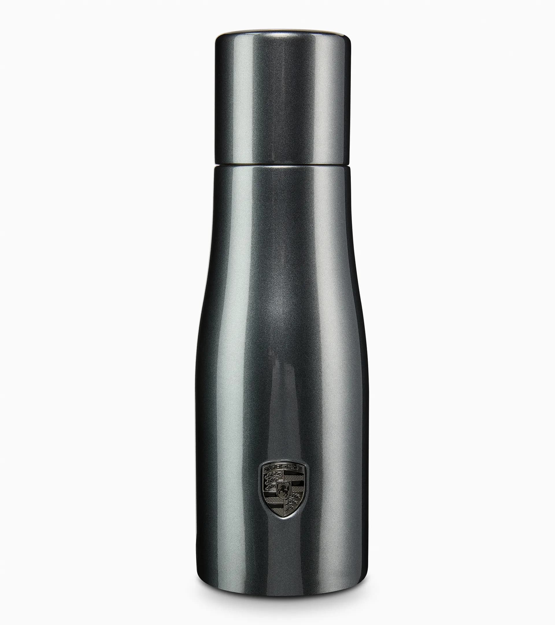 Whether you're on a road trip, a hike or going about your day, this thermally insulated bottle keeps drinks at the right temperature. Made of double-walled stainless steel and carefully painted, it combines functionality with a puristic design. The embossed Porsche Crest on the clasp adds a special detail.