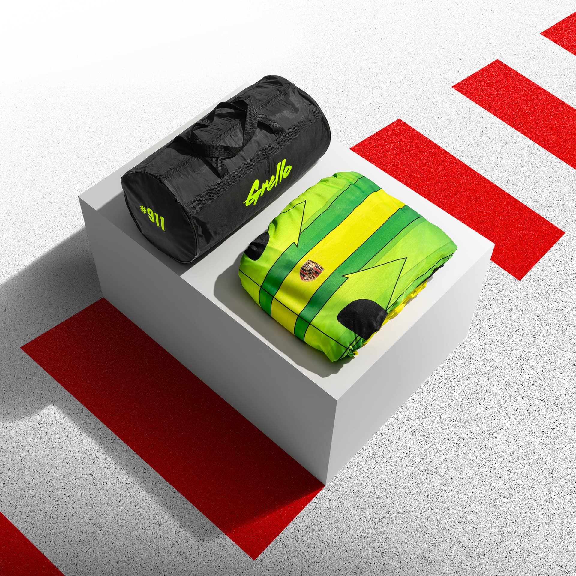 With the car cover in legendary racing designs, you can bring a piece of Porsche motor sports history into your garage: The Grello car cover is inspired by the bright 911 GT3 R race car “Grello”. Tailored to your 911 and made from breathable, anti-static and dirt-repellent material. You can find more striking eye-catchers and iconic car covers in our Porsche Online Shop.