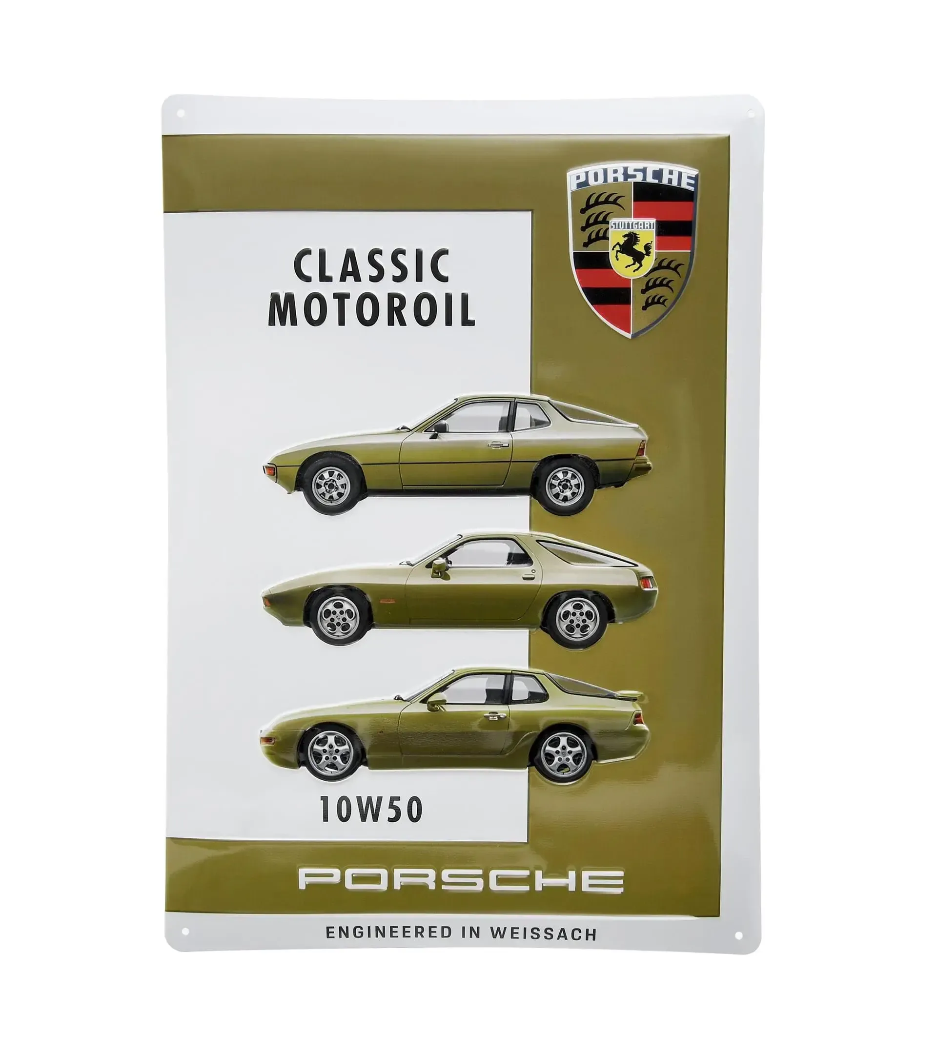 Plaque décorative en métal Porsche Classic Motoroil 10W50 en relief, 15,7 x 11 pouces