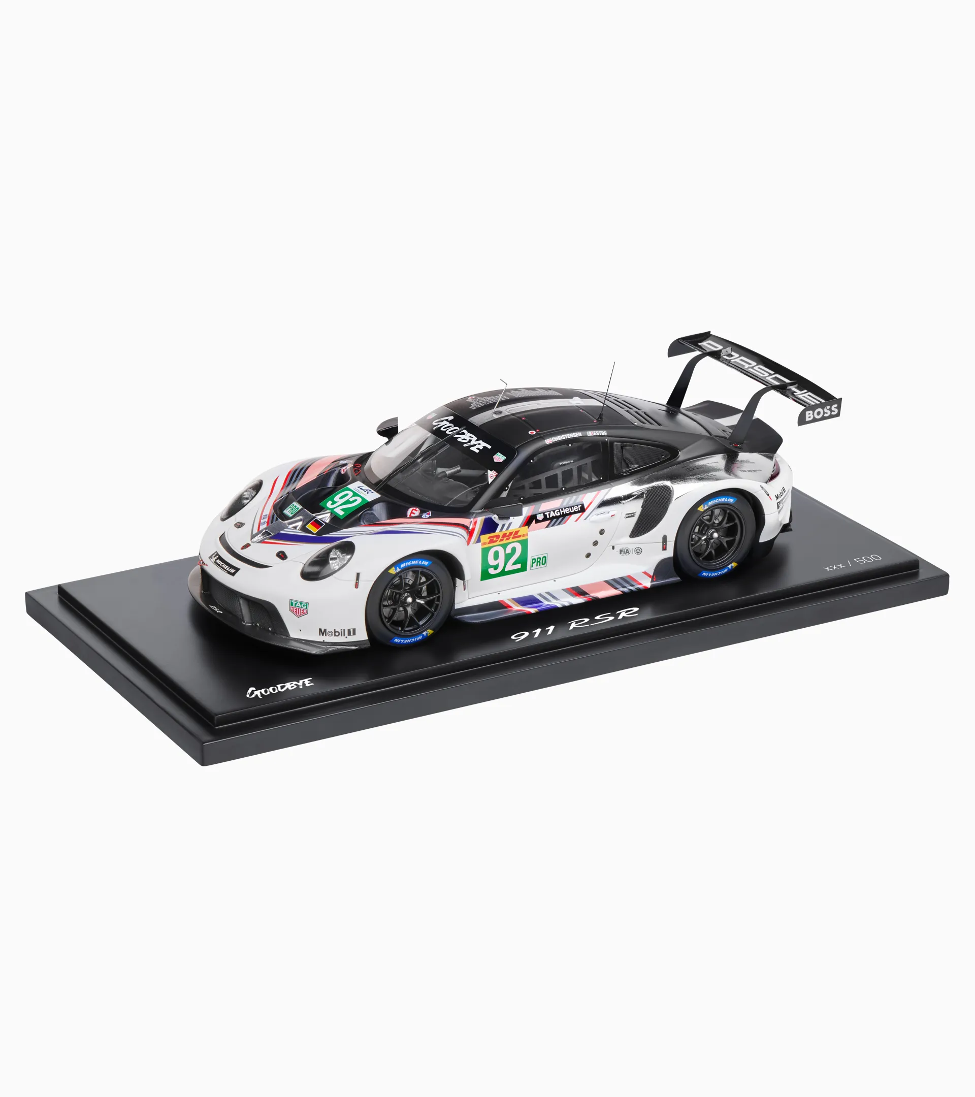 Ce modèle exclusif de la Porsche 911 RSR - Goodbye #92, réalisé à l’échelle 1:18, se distingue par son souci du détail et constitue une pièce incontournable de toute collection. L’emballage fourni en fait également un cadeau idéal pour tous les passionnés de Porsche.