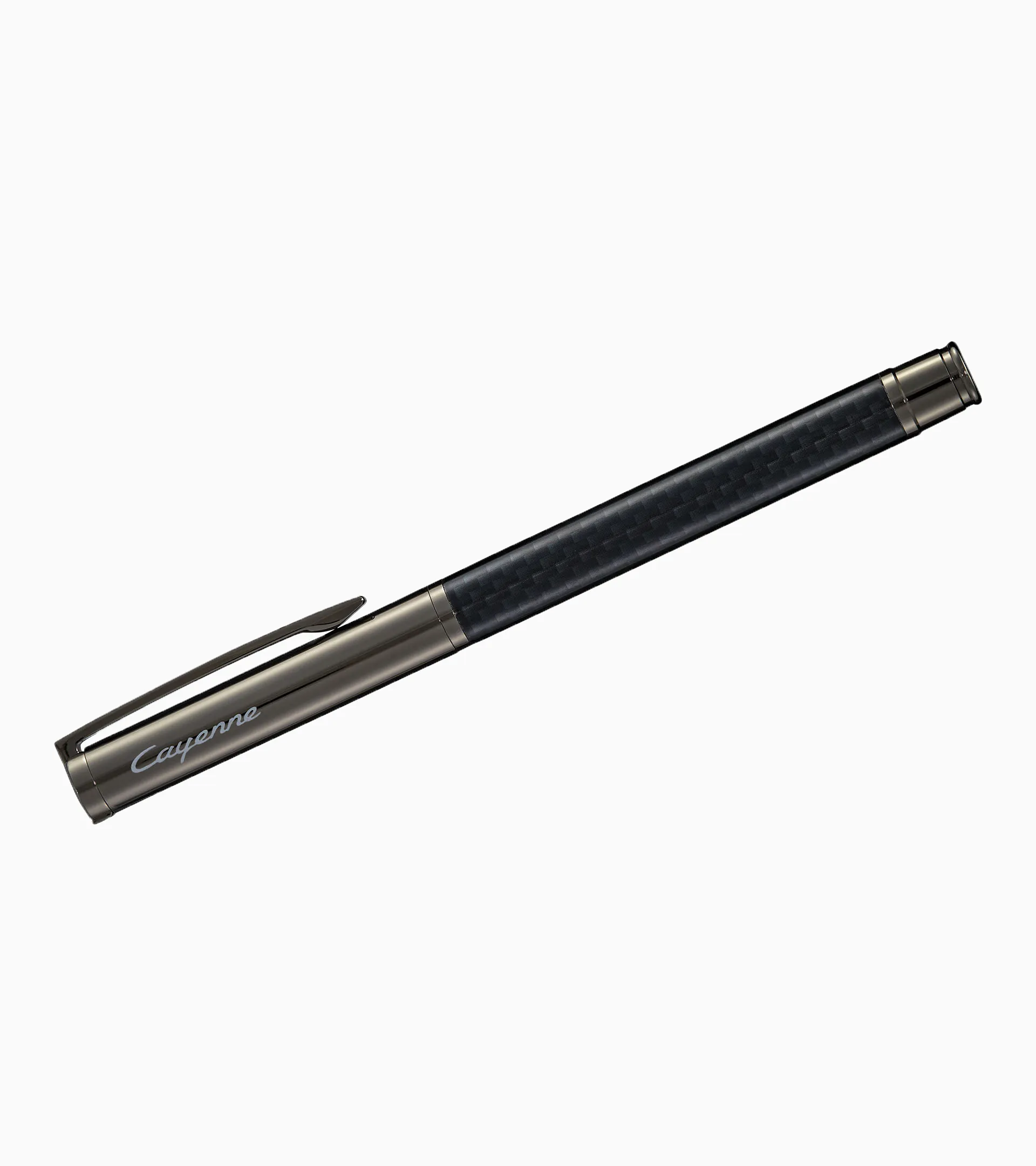 Stylo roller design Porsche à l’aspect carbone. Avec logo Cayenne pour les amoureux du modèle.