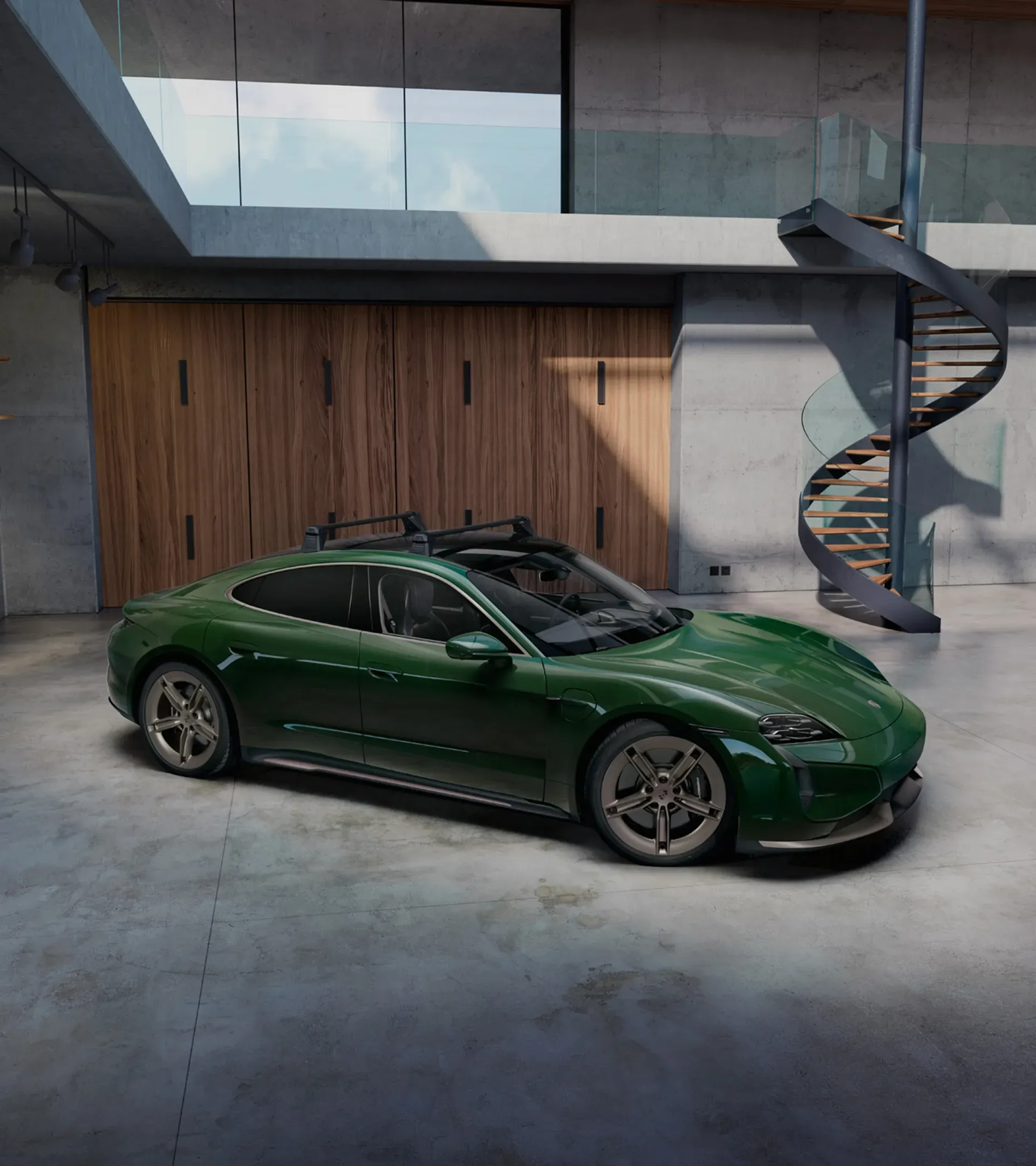 2 abschließbare Quertraversen aus Aluminium. Die maximale Dachlast beträgt 75 kg. Geeignet für Porsche Tequipment Transportaufsätze.
