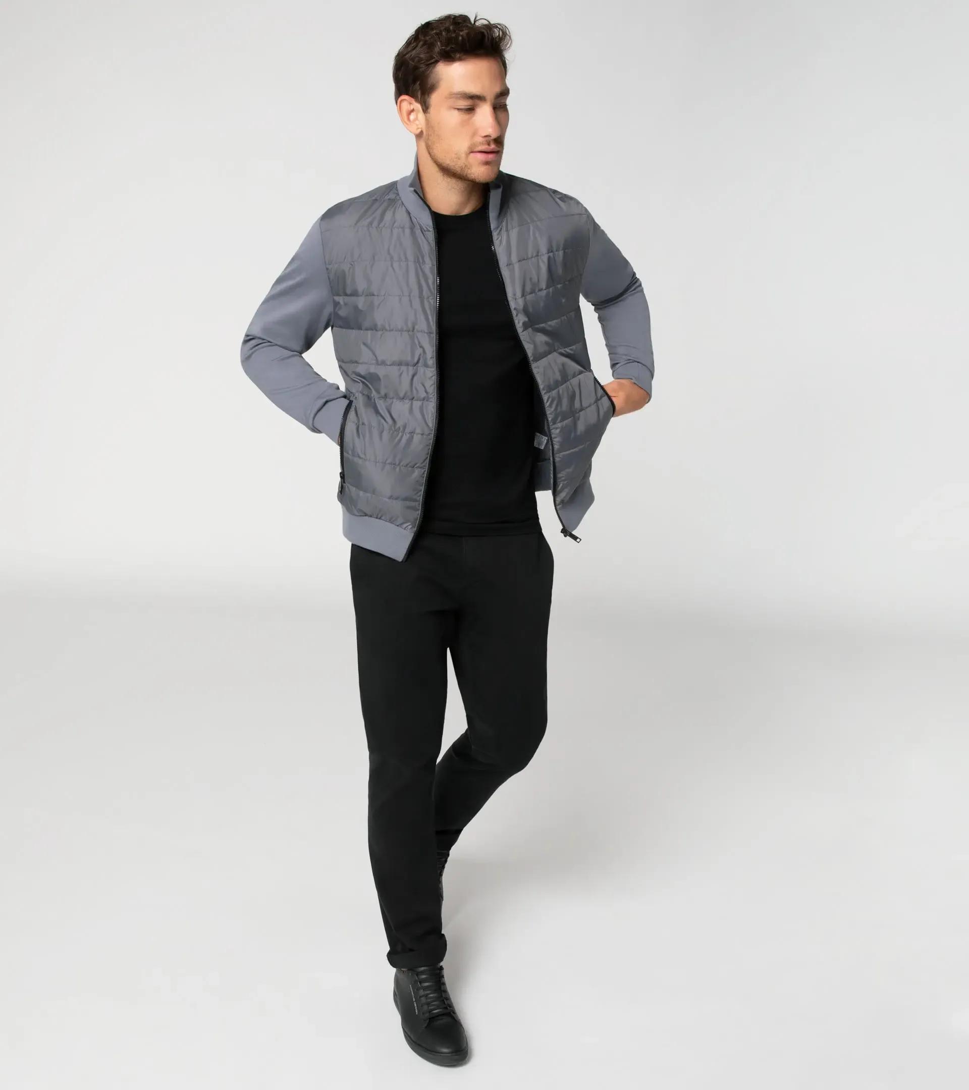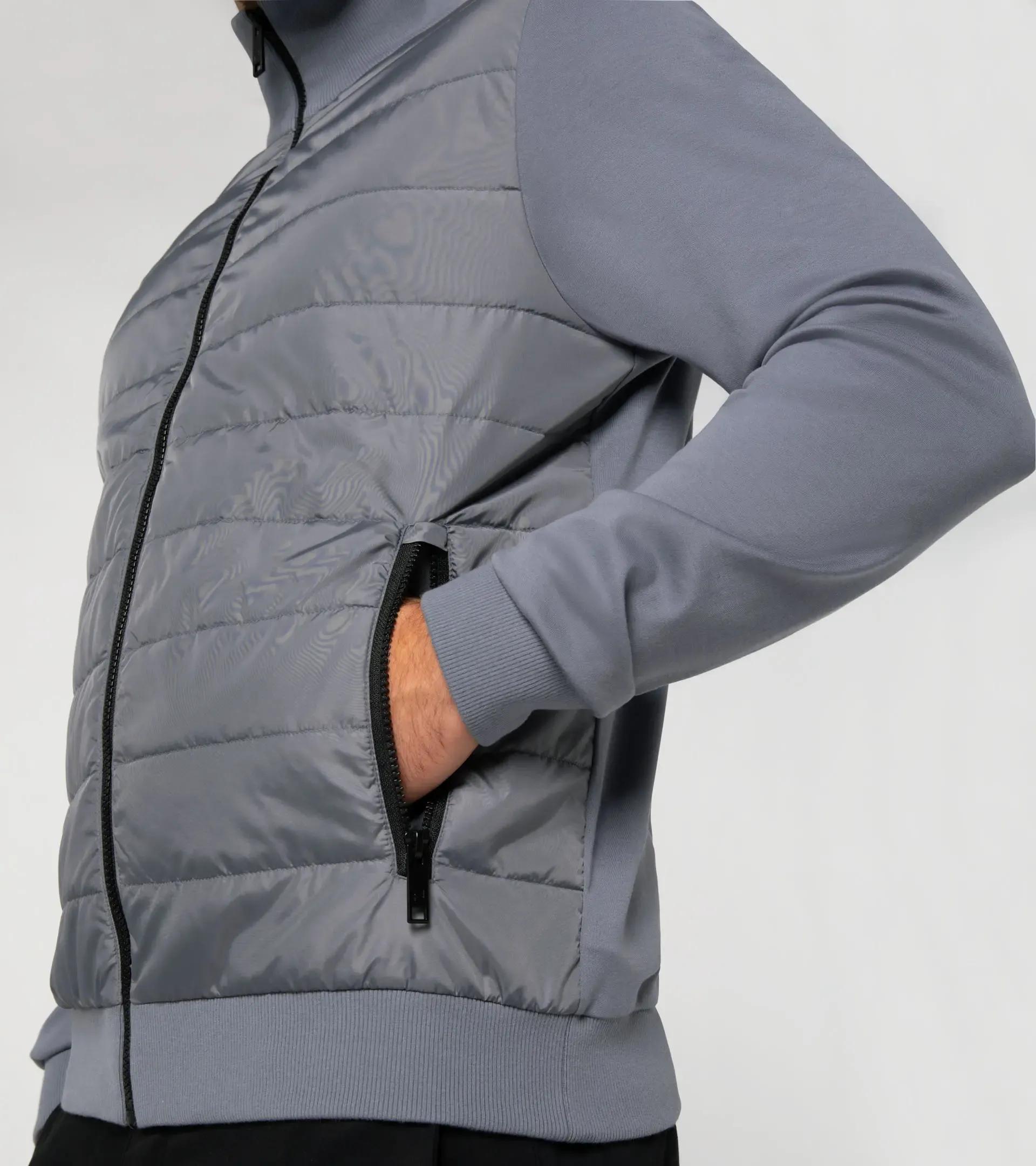 Leicht wie eine Steppweste, wärmend wie ein Sweatshirt: Der leger geschnittene Hybrid Cardigan punktet mit seinem Materialmix, den man sehen und spüren kann. Die versteckten Reißverschlusstaschen im Hüftbereich unterstreichen sein cleanes, sportliches Design. Der Front-Reißverschluss mit maßgefertigtem Zipperpuller ist ein stylisches Detail.