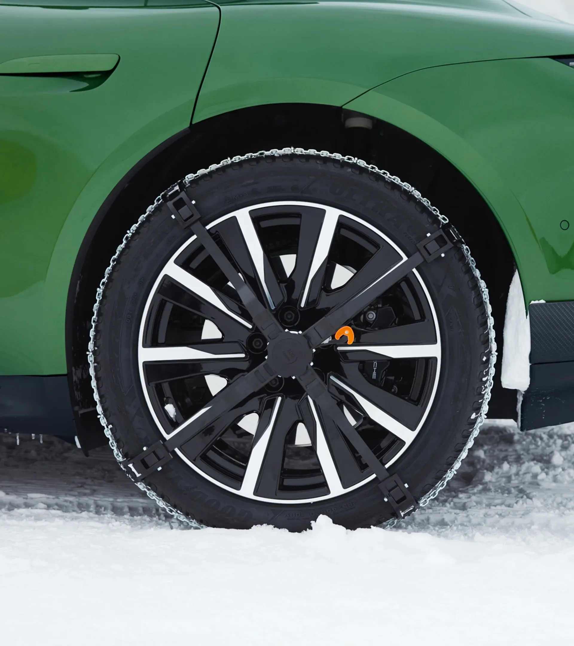 Die Schneeketten sind mit einer Schnellspann-Technik ausgestattet. Diese ermöglicht eine einfache und komfortable Montage auch bei engen Radhäusern.