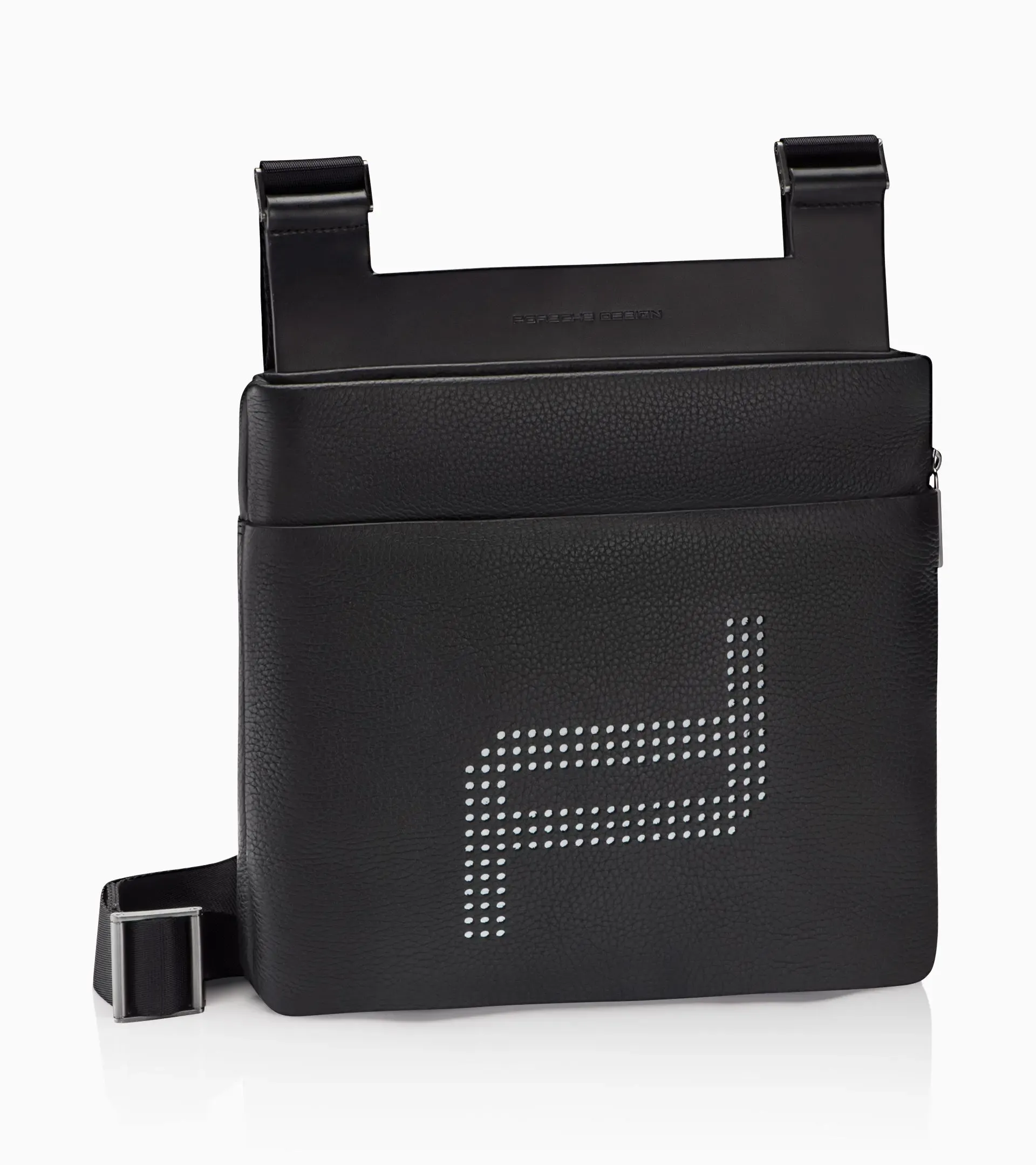 Die Schultertasche für den urbanen Alltag: Die Porsche Design Signature ShoulderBag im stromlinienförmigen Design ist unverkennbar vor der Porsche DNA geprägt. Exklusives, weiches Leder in genarbter Struktur trifft auf Galvaniken in Brushed Chrome, versiegelte Reißverschlüsse und ein mit reflektierendem Material hinterlegtes, perforiertes PD Icon – ein Design-„Highlight", das bei Dunkelheit für noch mehr Sichtbarkeit und Sicherheit sorgt. Dank des längenverstellbaren Gurts kann die flache Umhängetasche über der Schulter oder auch als Crossbody-Bag getragen werden. Persönliche Gegenstände lassen sich einfach und effektiv in der vorderen Einschubtasche oder im Hauptfach verstauen. Im gepolsterten Fach auf der Rückseite finden die meisten gängigen Tablet-Computer Platz.