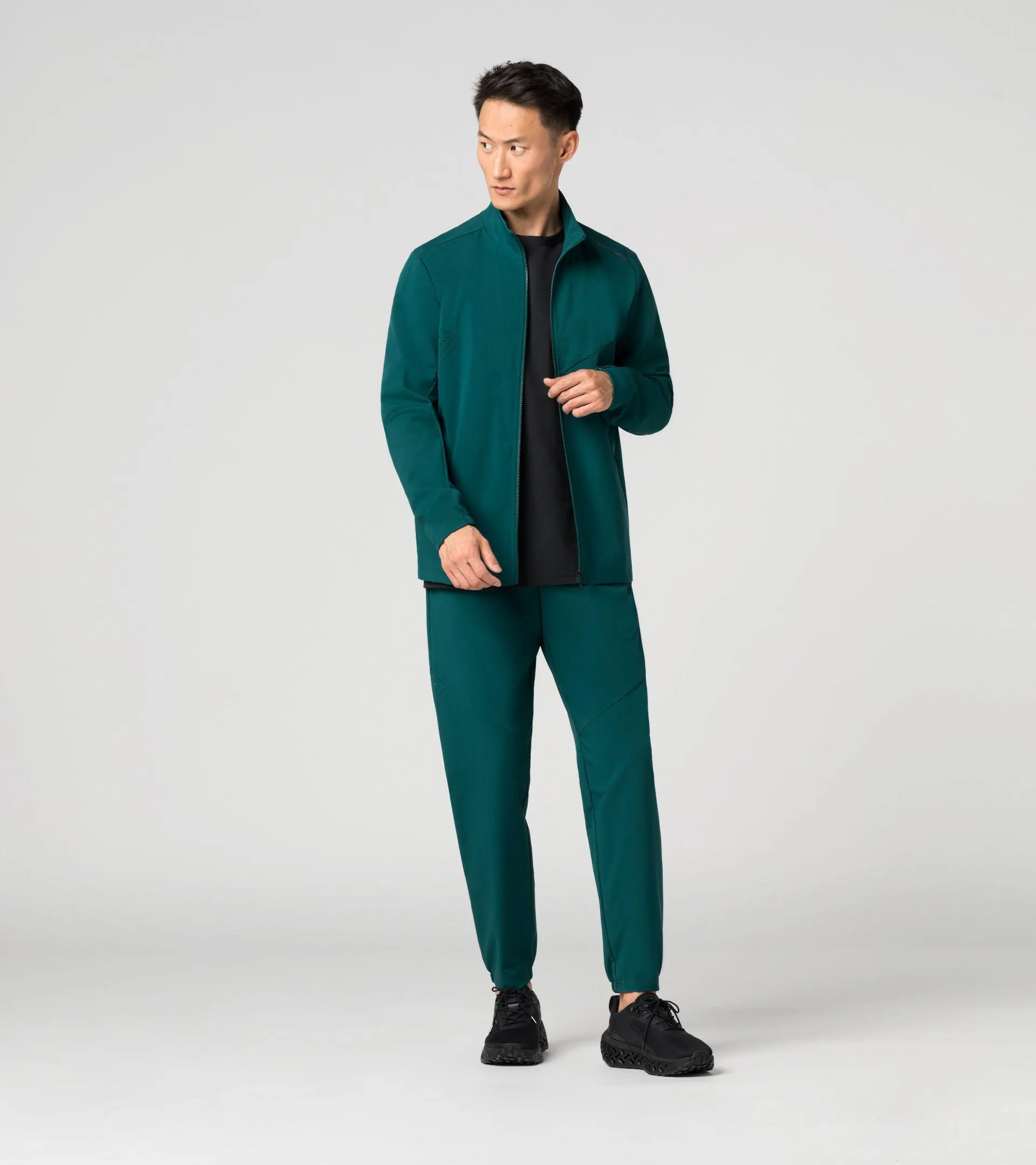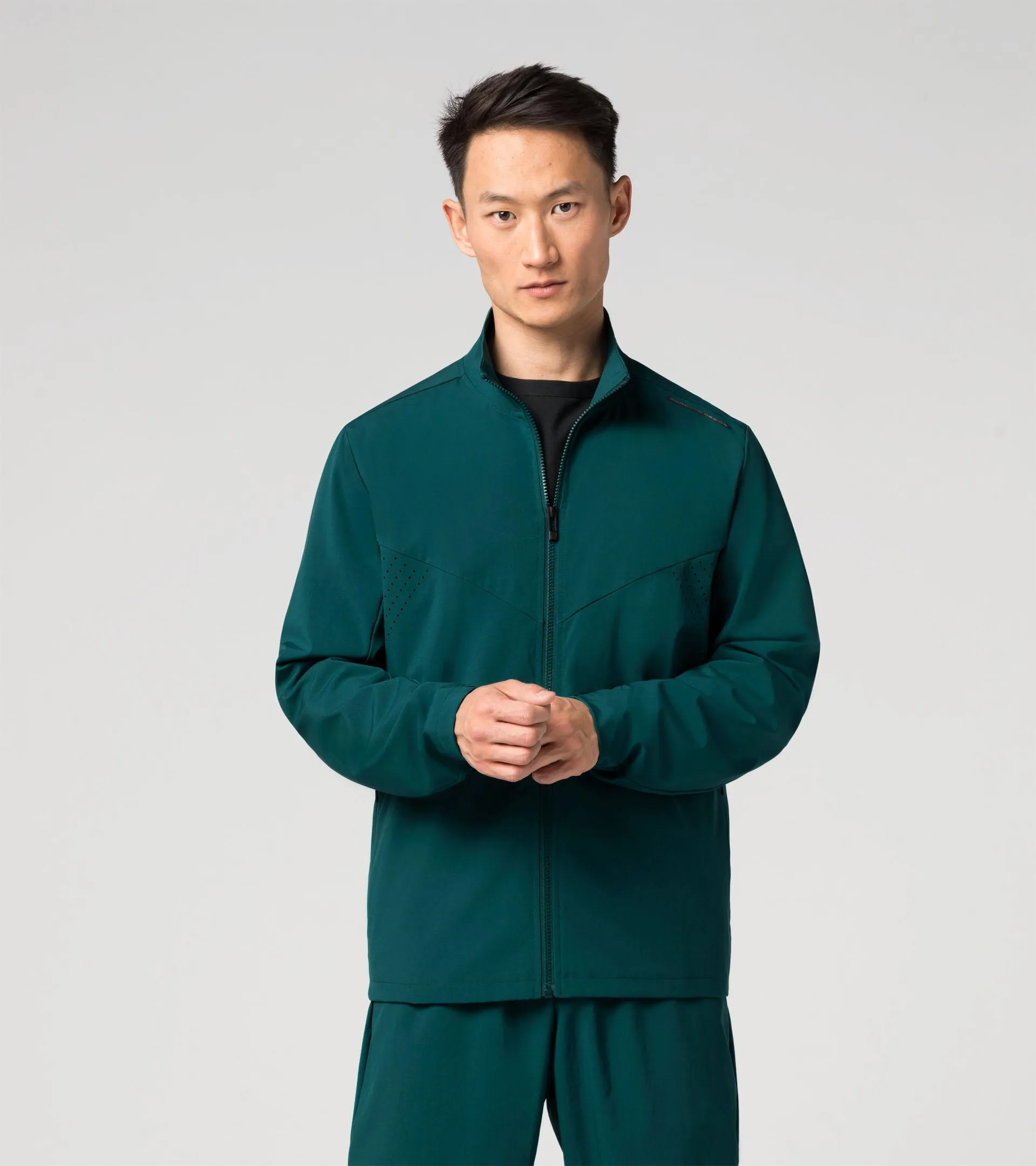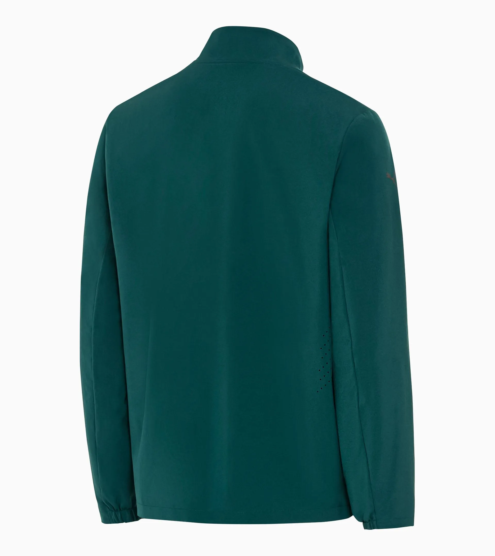 Minimalistisch, technisch, funktional: Exklusive Porsche Design Trainingsjacke aus schnell trocknendem Stretchmaterial mit recyceltem Polyester und Mesh-Futter.