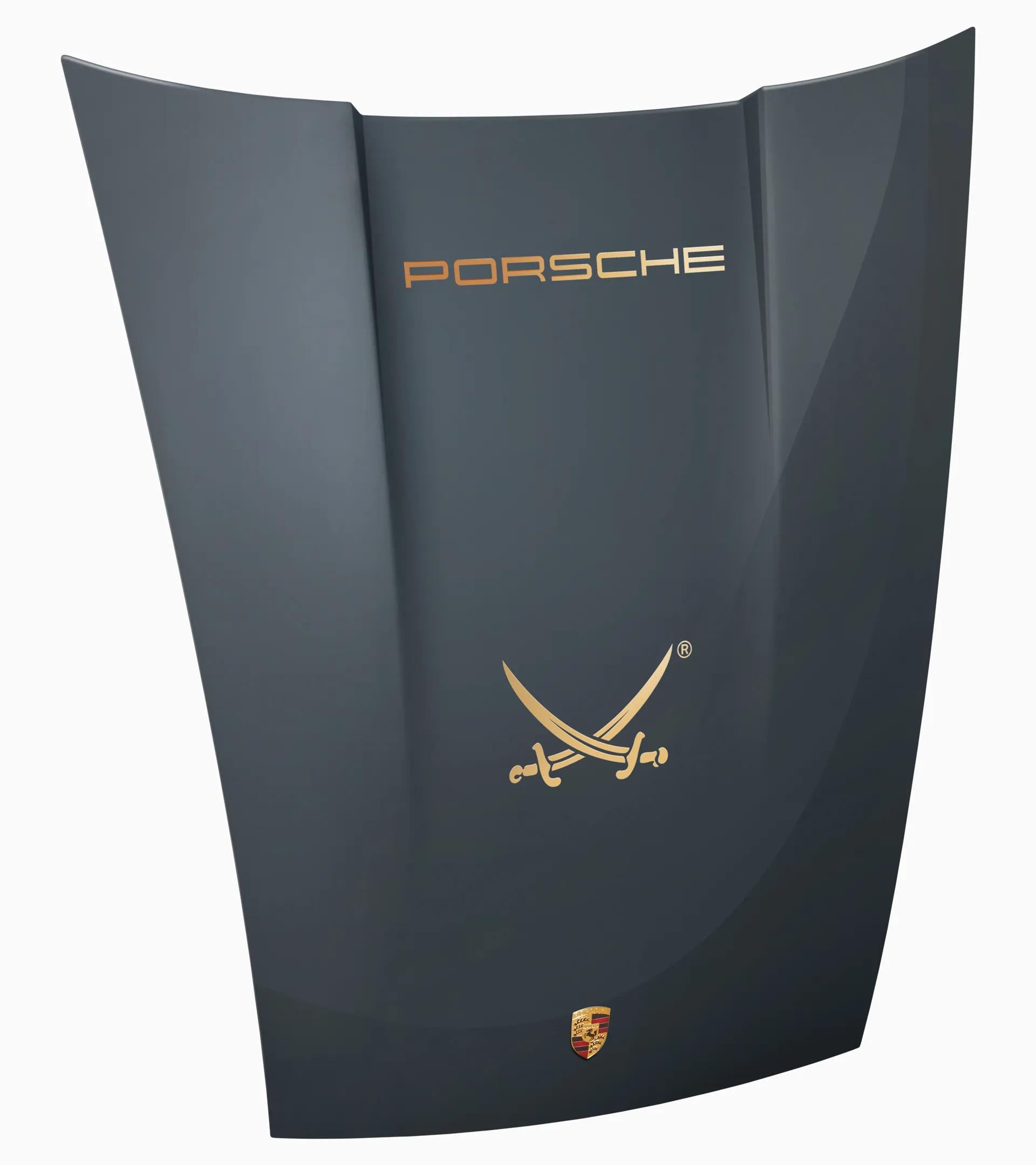 A piece of Porsche history for your home from the Porsche Sansibar Collection: the bonnet of the Porsche 911 (G model) in the Sansibar design is both an impressive decorative object and a magnetic board. The Porsche lettering and the Porsche Crest complete its authentic, stylish design.