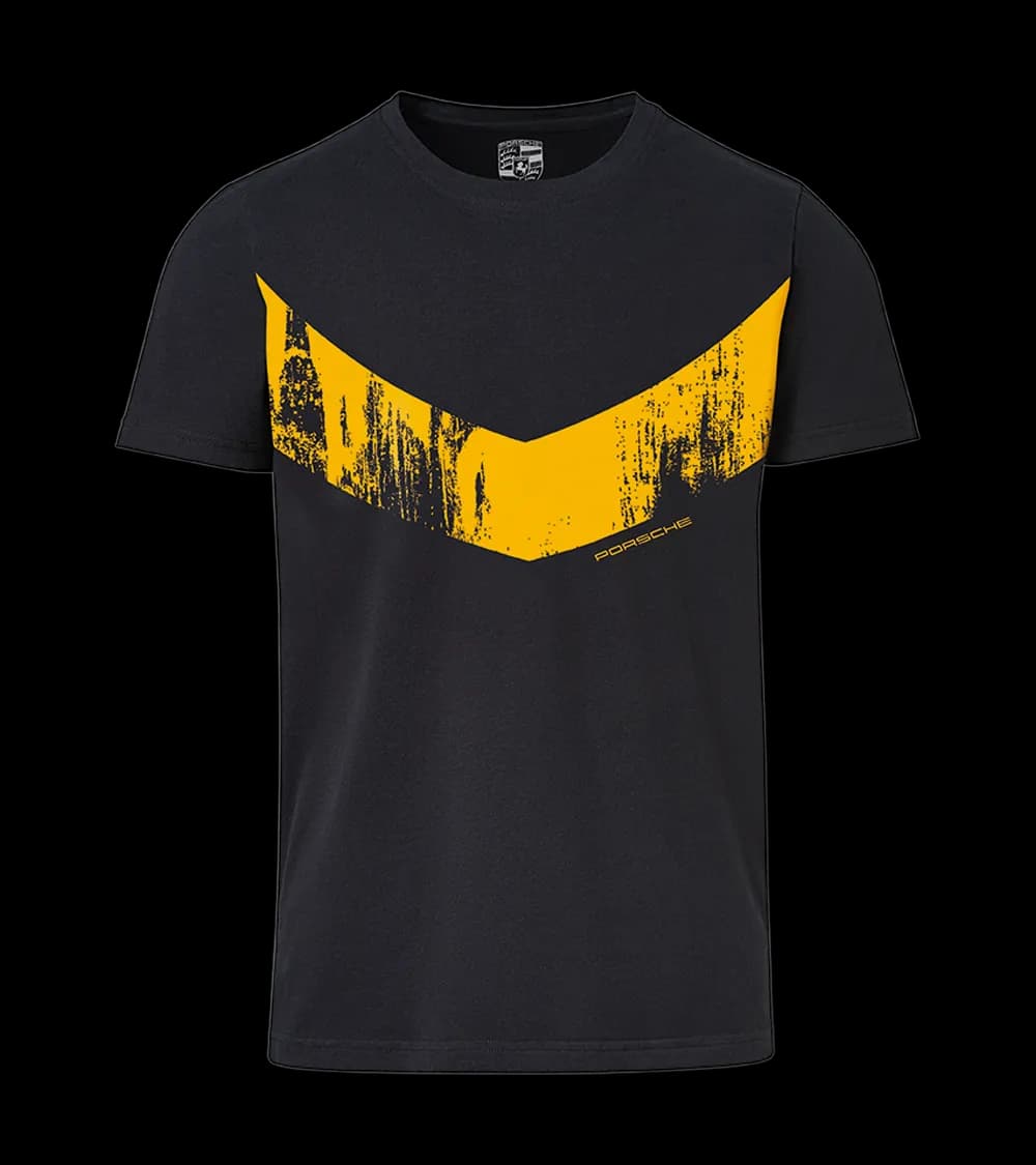 Collector's T-shirt inspired by the vehicle design of the 718 Cayman GT4 Clubsport. Integrated Crest design and 'PORSCHE' logo on the breast. Packaged in an exclusive