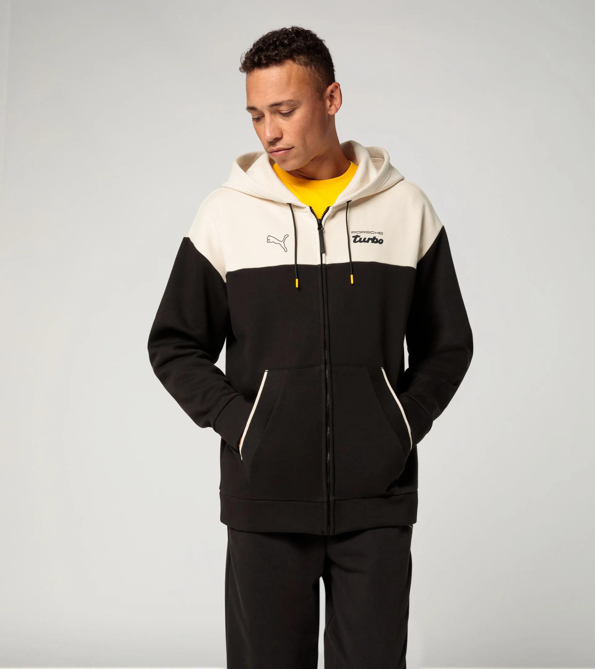 Comfortable for everyday life: The sweat jacket from the Porsche Legacy collection impresses visually with many details and color blocking design. Thanks to the relaxed fit and the soft sweat fabric, it is also particularly comfortable.