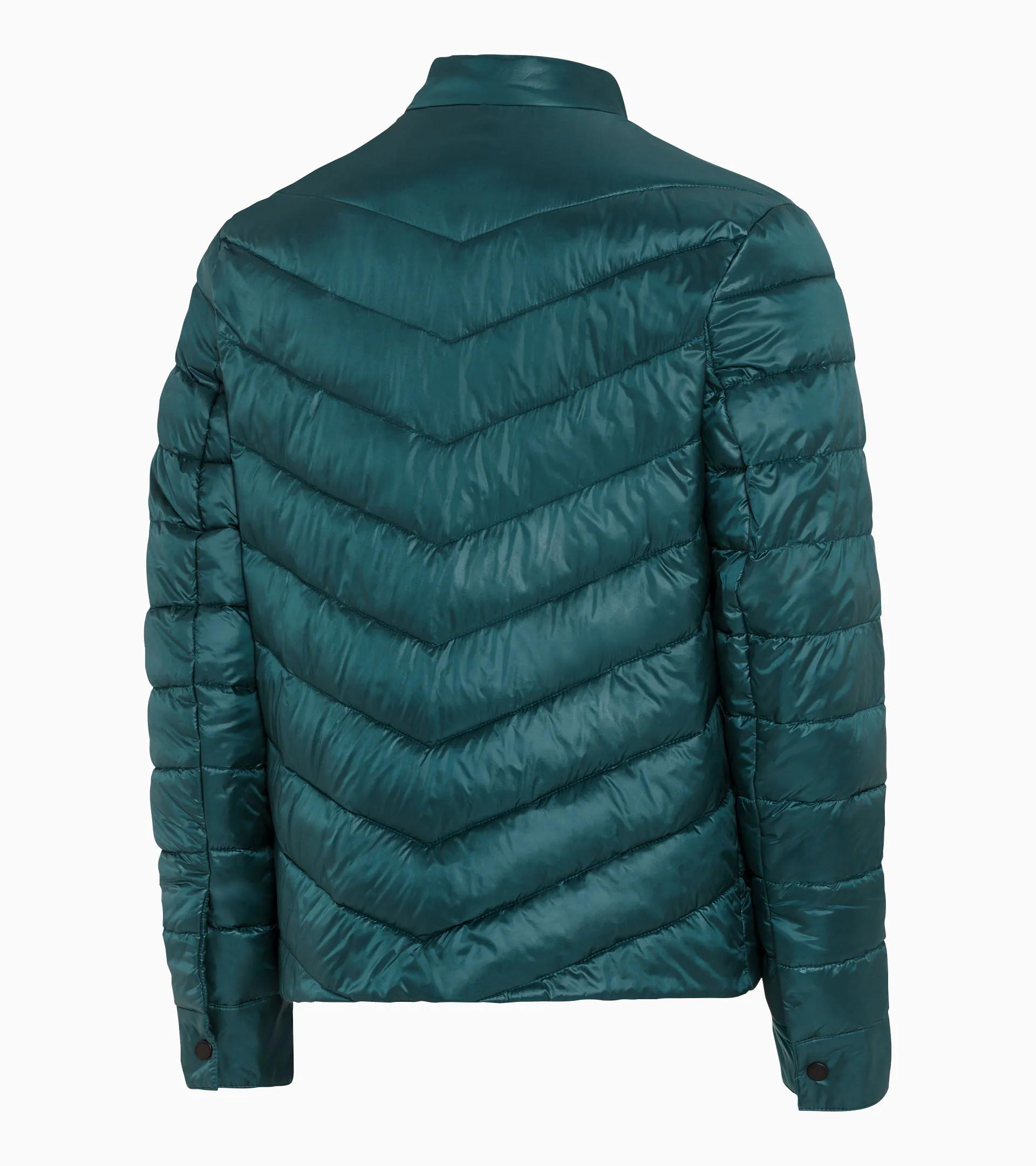 Light as a feather – without any feathers: the straight-cut jacket with down-free filling is perfect for the transitional seasons. Concealed zip pockets on the hips and chest as well as snap fasteners on the cuffs offer practical functionality. Branded zip pullers and integrated rubber Porsche Design logos on the shoulders and sleeves complete the design. The inner lining with two pockets offers protection for important items and underlines the high-quality workmanship.