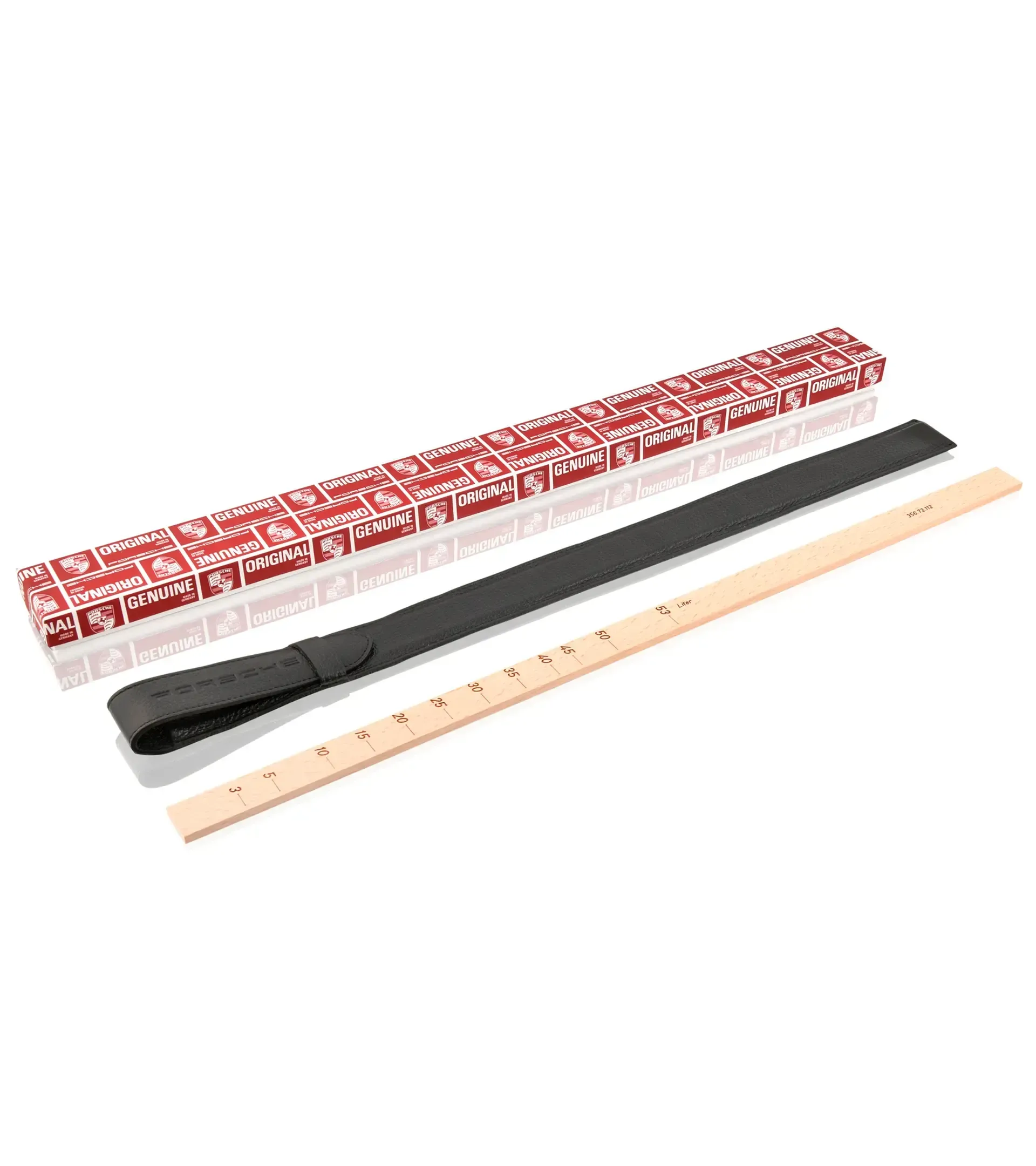 Petrol dipstick made of beech wood with a high-quality leather case and graduated scale in litres for measuring the fuel volume.