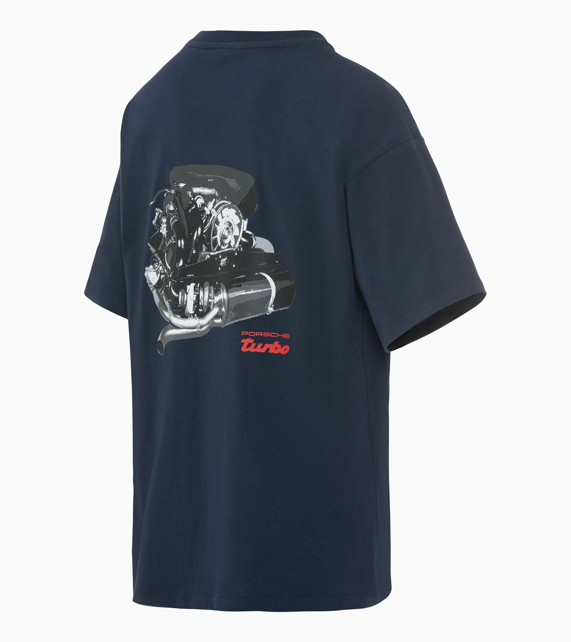 Inspired by the unmistakable design of the Porsche 911 Turbo, the Porsche Legacy Collection offers style and performance for everyday life. The Statement Graphic Shirt is a must-have for all fans of streetwear thanks to the image of the first Turbo engine on the centre of the back.
