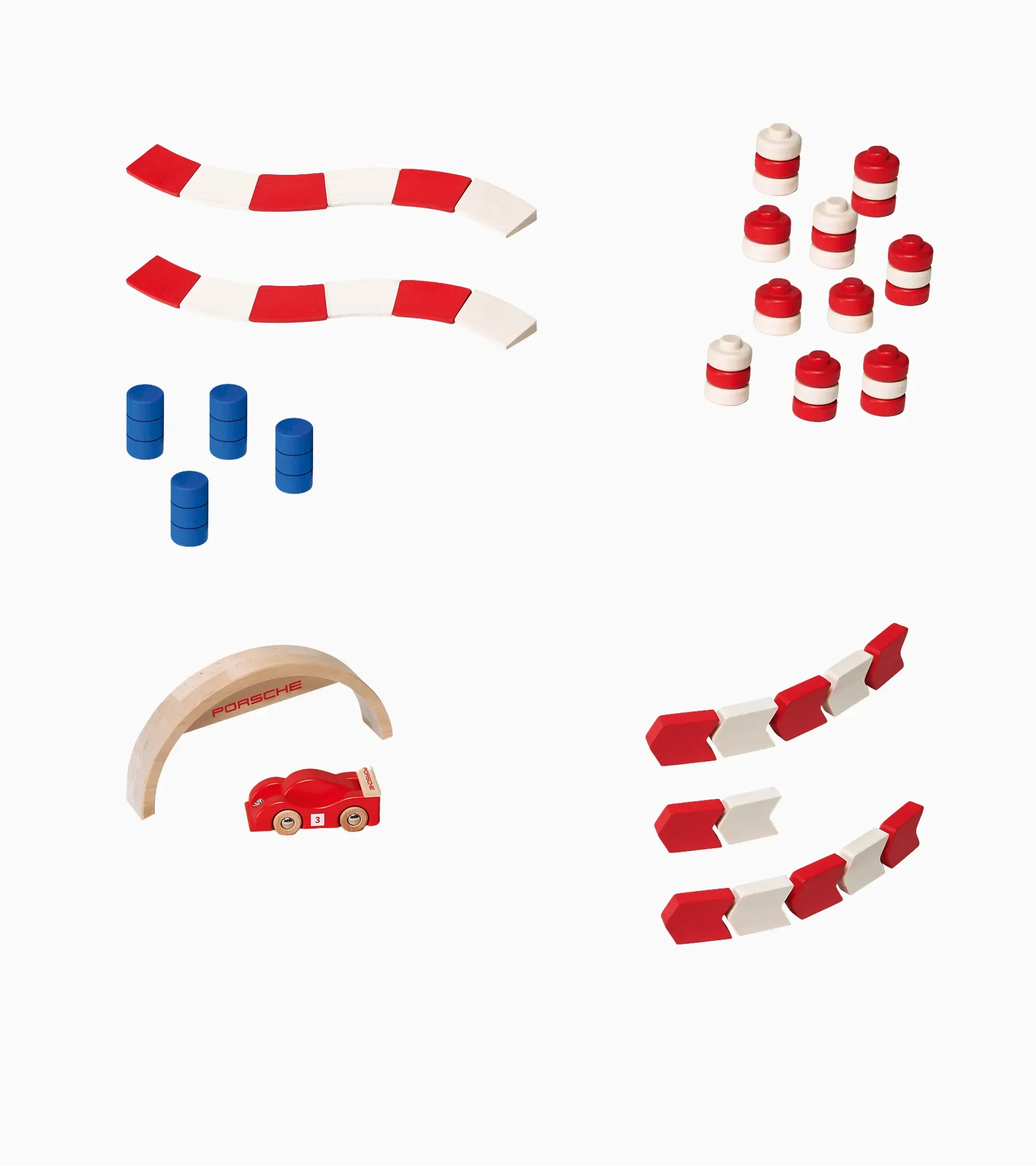 Expansion set consisting of:S: 4 curbs, 4 guard rails, 9 tires, 4 tonsM: 8 curbs, 8 guard rails, 18 tires, 8 tonsL: 12 curbs, 12 guard rails, 27 tires, 12 tons, one additional car (red), one arc