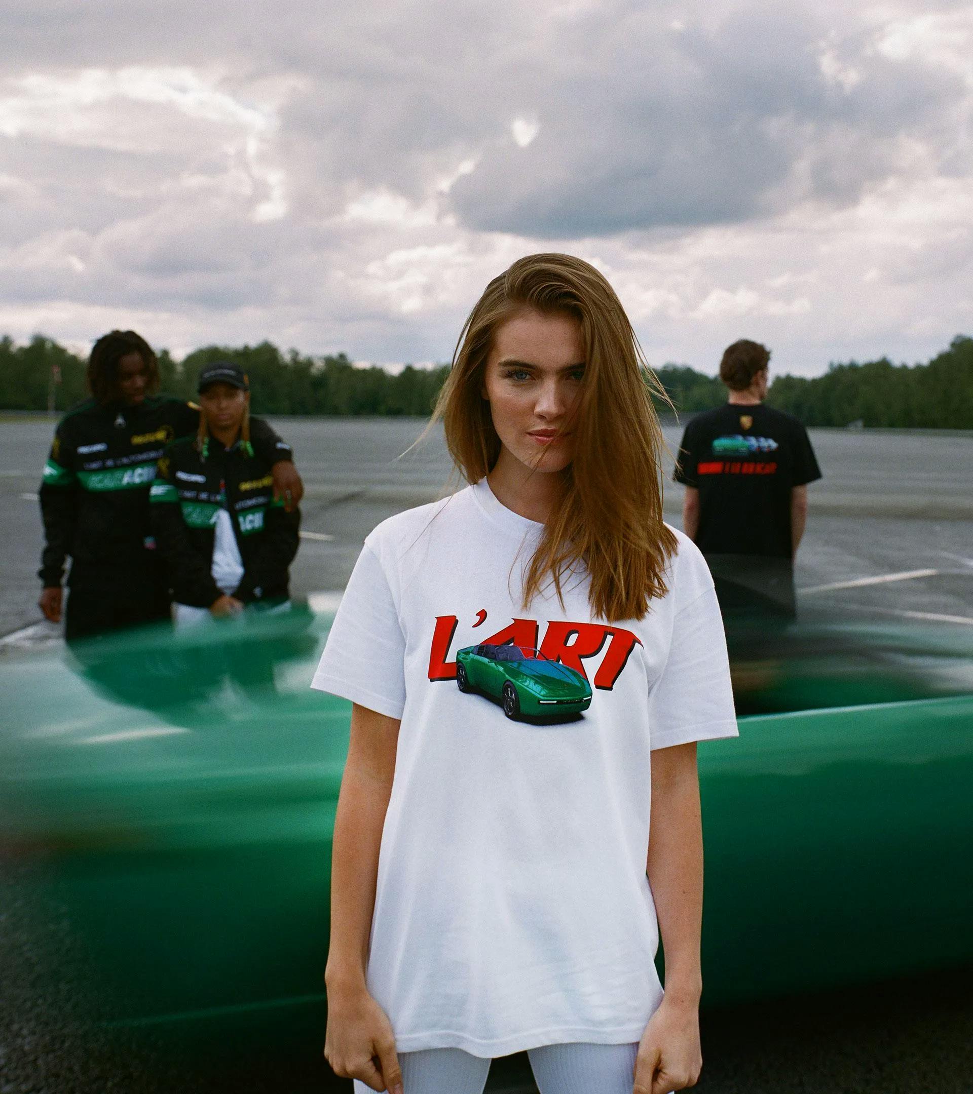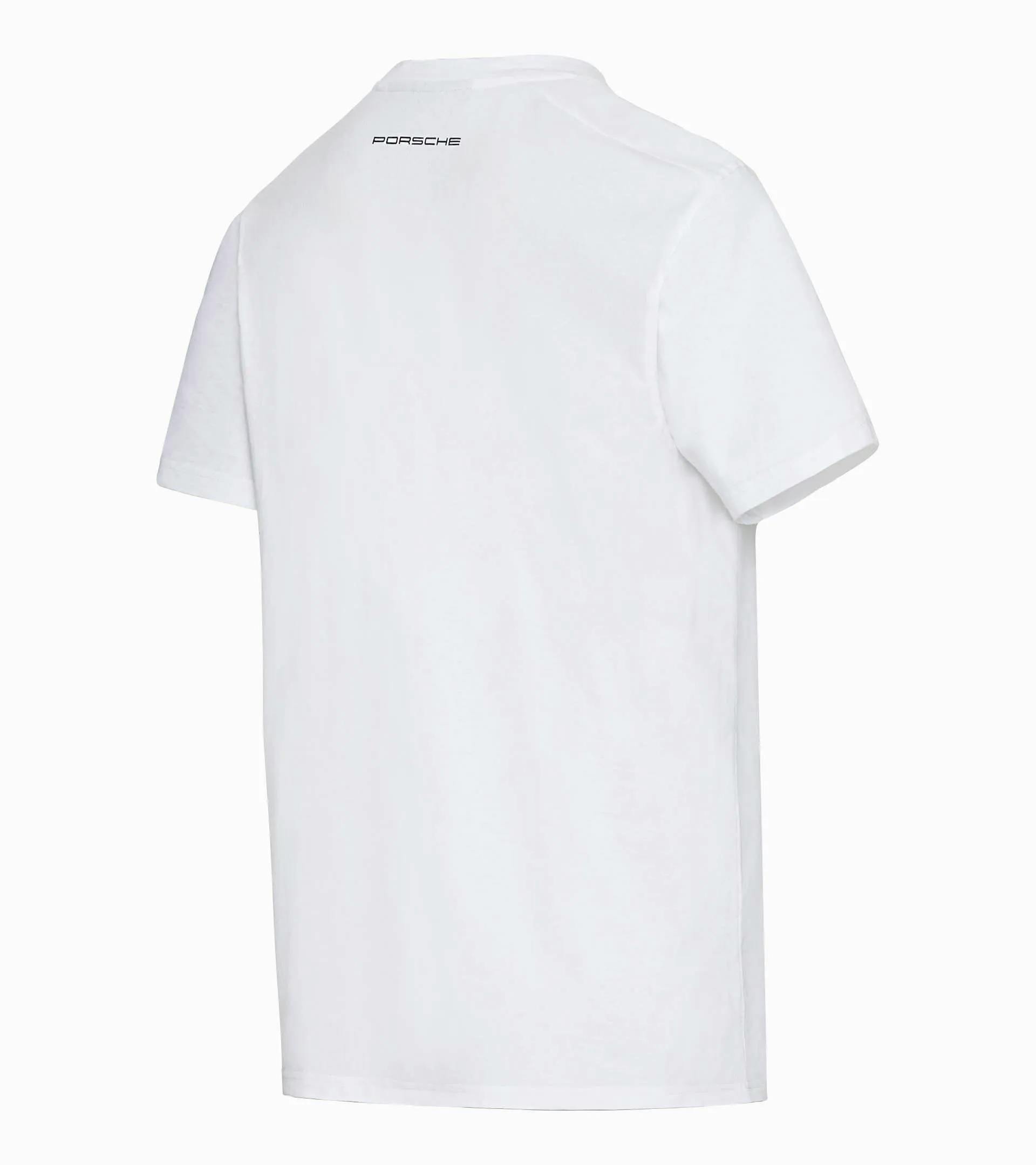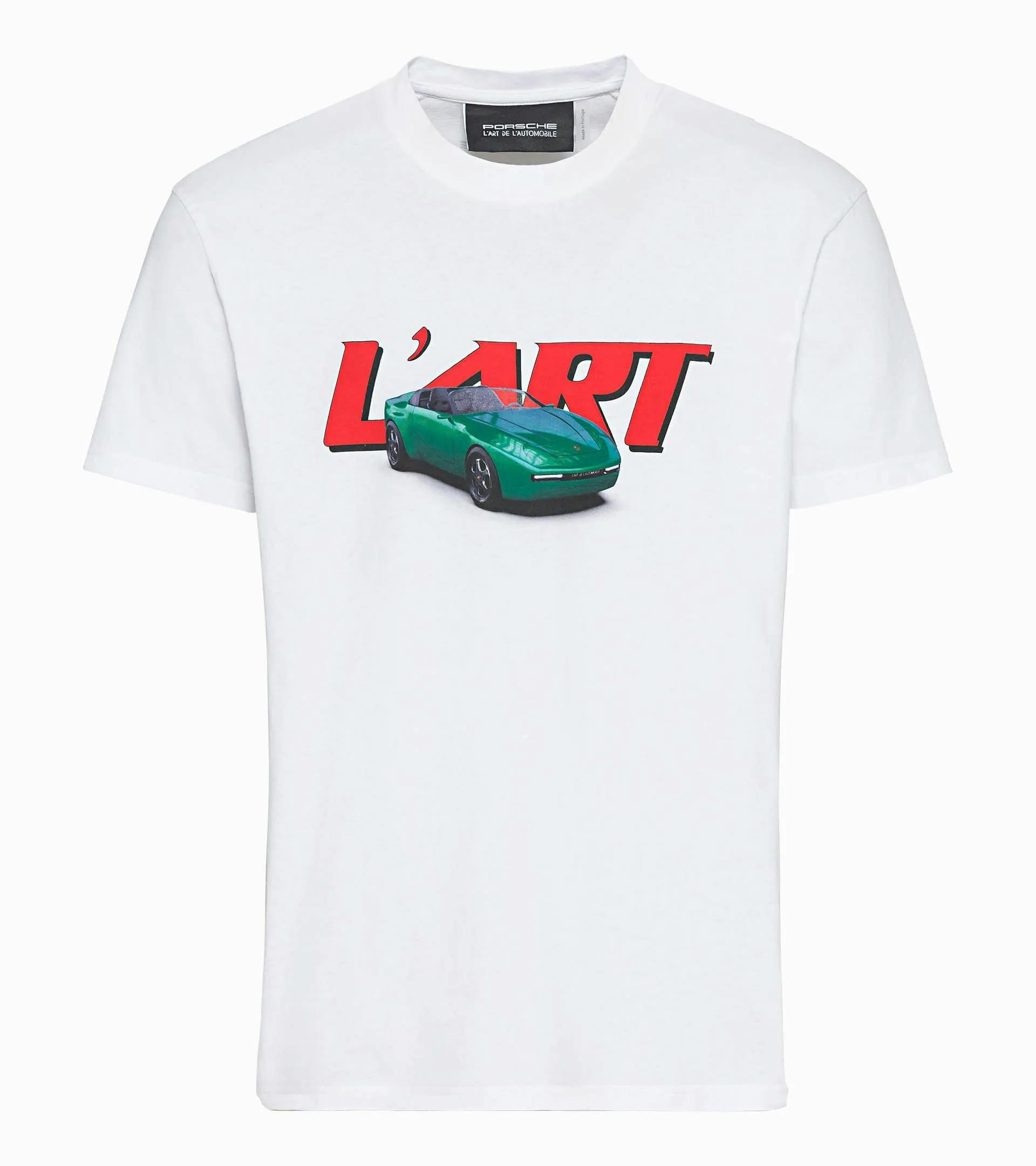 A genuine eye-catcher: the T-shirt from the 968 L'ART Collection by L'Art De L'Automobile x Porsche. Thanks to the multi-coloured L'ART print on the chest, this is not only a more casual t-shirt but also a more striking one for everyday and leisure wear.