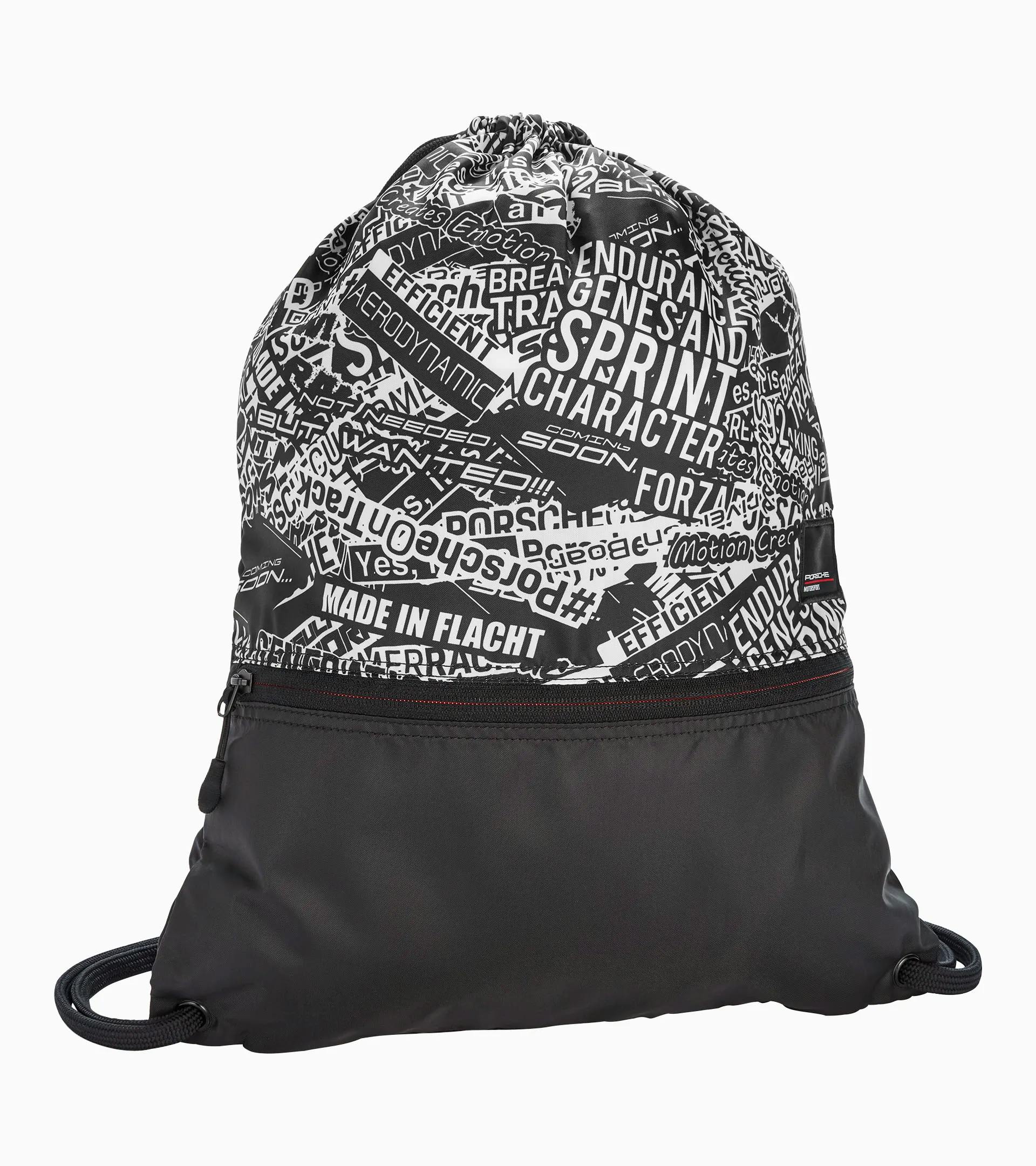 Bring Porsche's racing spirit to your workouts with this exclusive gym bag made from 100% recycled polyester. Inspired by the camo-wrapped 911 GT3 R, its high-performance design has a zip pocket and Porsche sayings printed on top. The sticker hang tag completes this sleek, sustainable bag's authentic motorsport vibe.