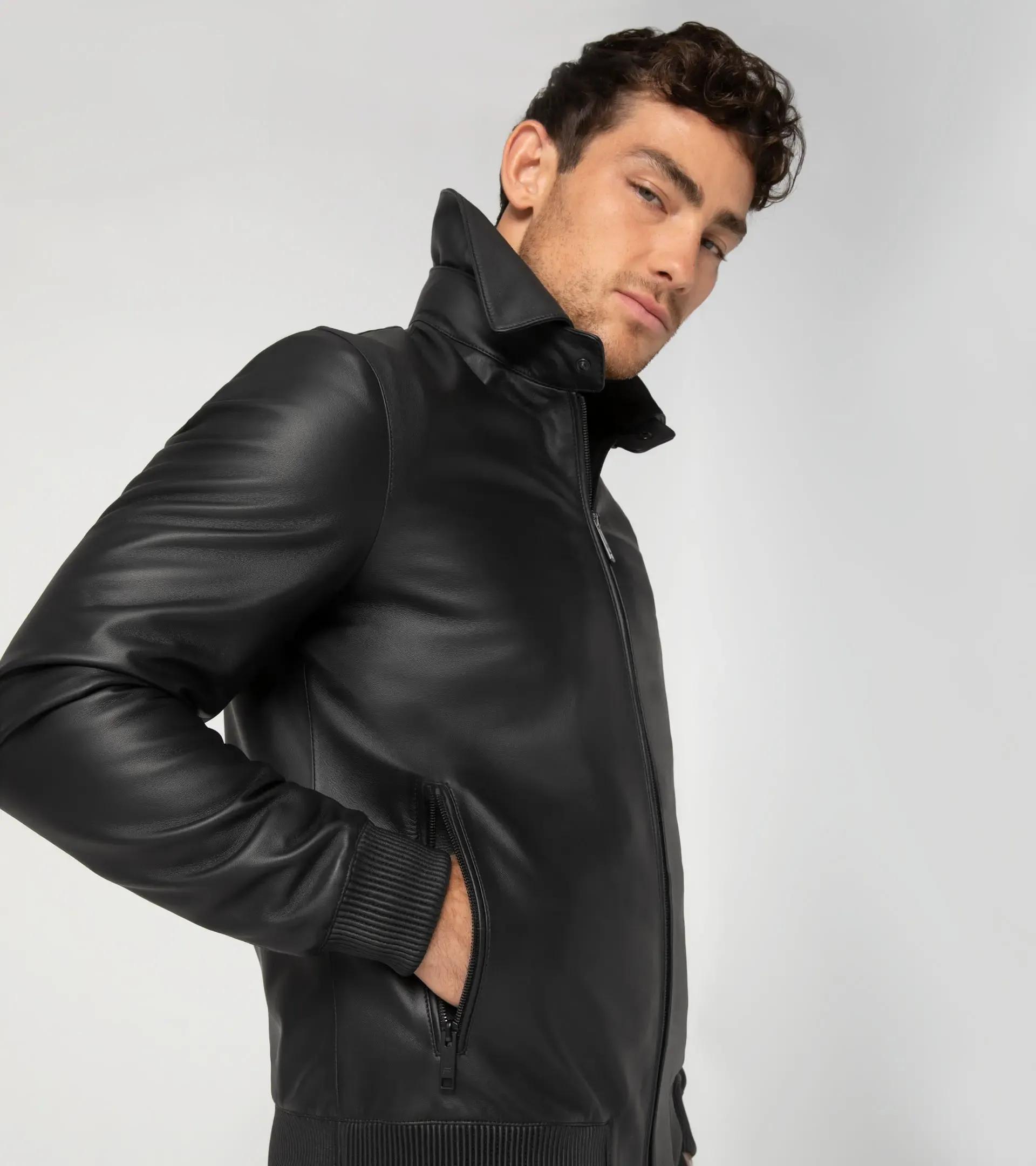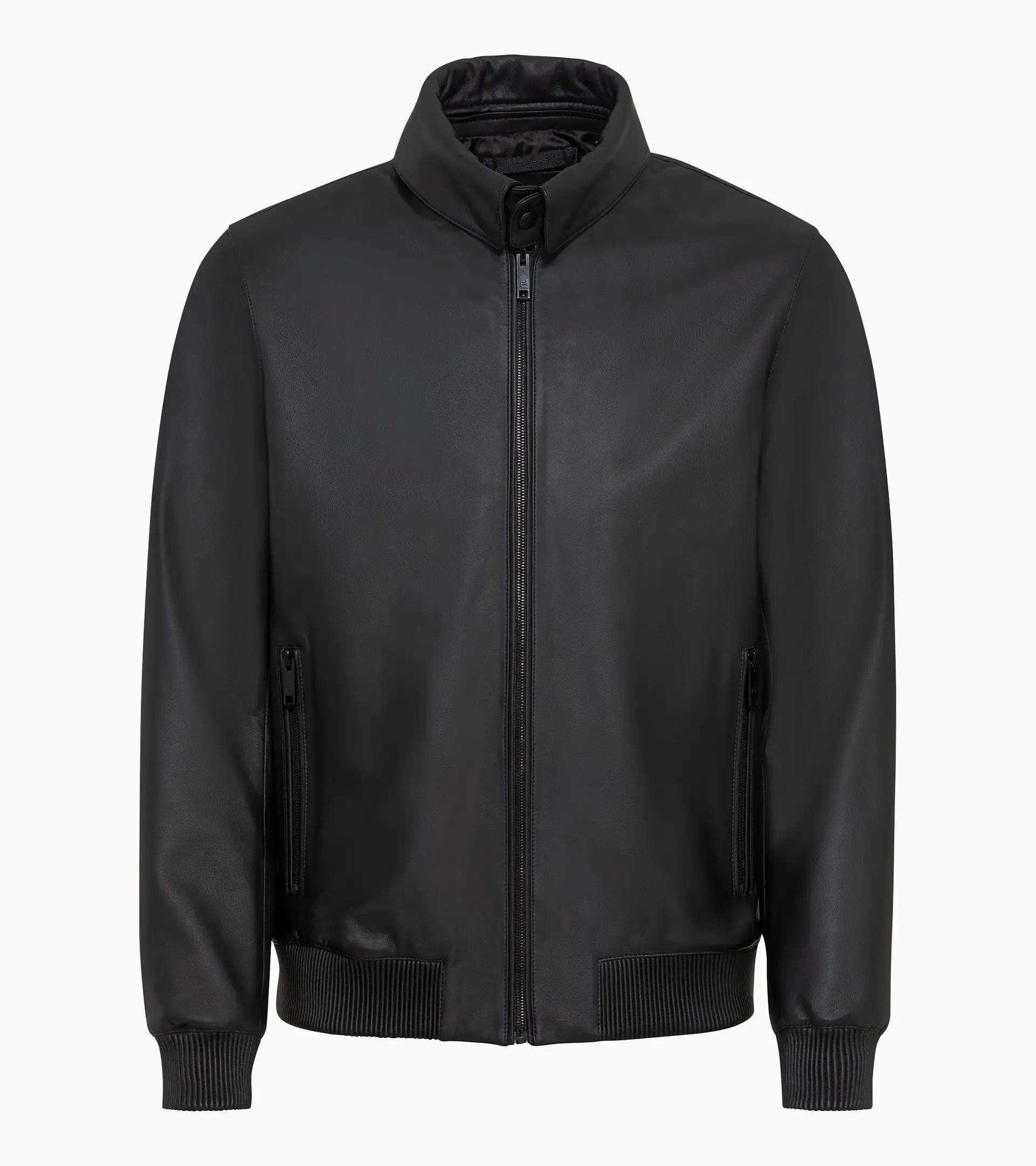 Veste en cuir exclusive de Porsche Design avec col montant amovible.