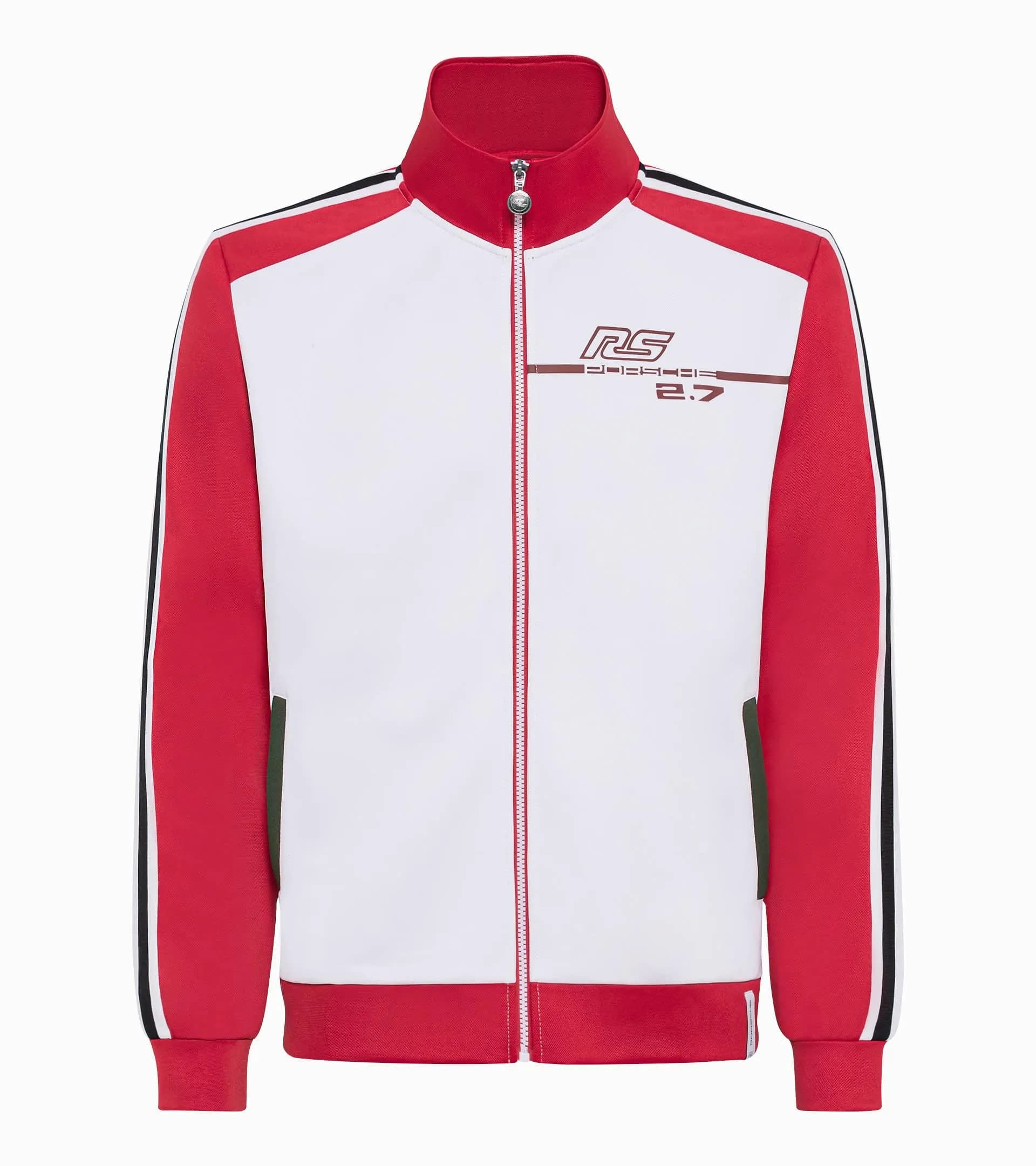 Adatta per il tempo libero e per la vita quotidiana: la comoda ed elegante giacca in felpa con colletto alla coreana. La stampa RS 2.7 sul petto e la scritta Porsche stampata sul dietro conferiscono alla giacca un aspetto particolarmente sportivo e moderno.