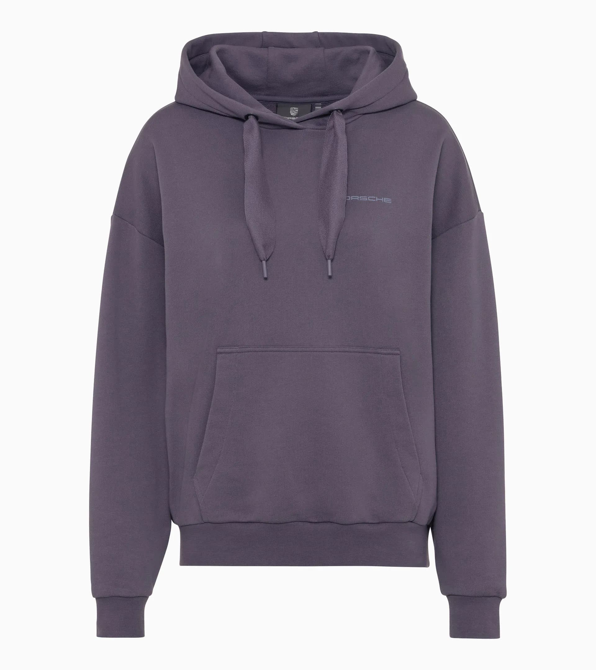 Il minimalismo incontra l'eleganza: la Essential Collection dal design puristico cattura lo spirito Porsche nella sua forma più pura. La felpa con cappuccio da donna ha cordoncini larghi e una tasca a marsupio applicata. Visivamente colpisce per la scritta Porsche sul davanti, mentre il grande stemma Porsche sul retro ne fa una vera dichiarazione di stile.