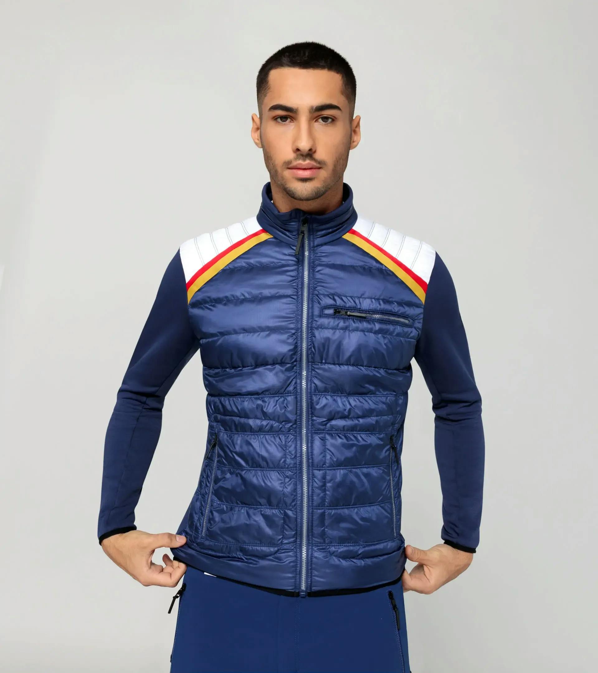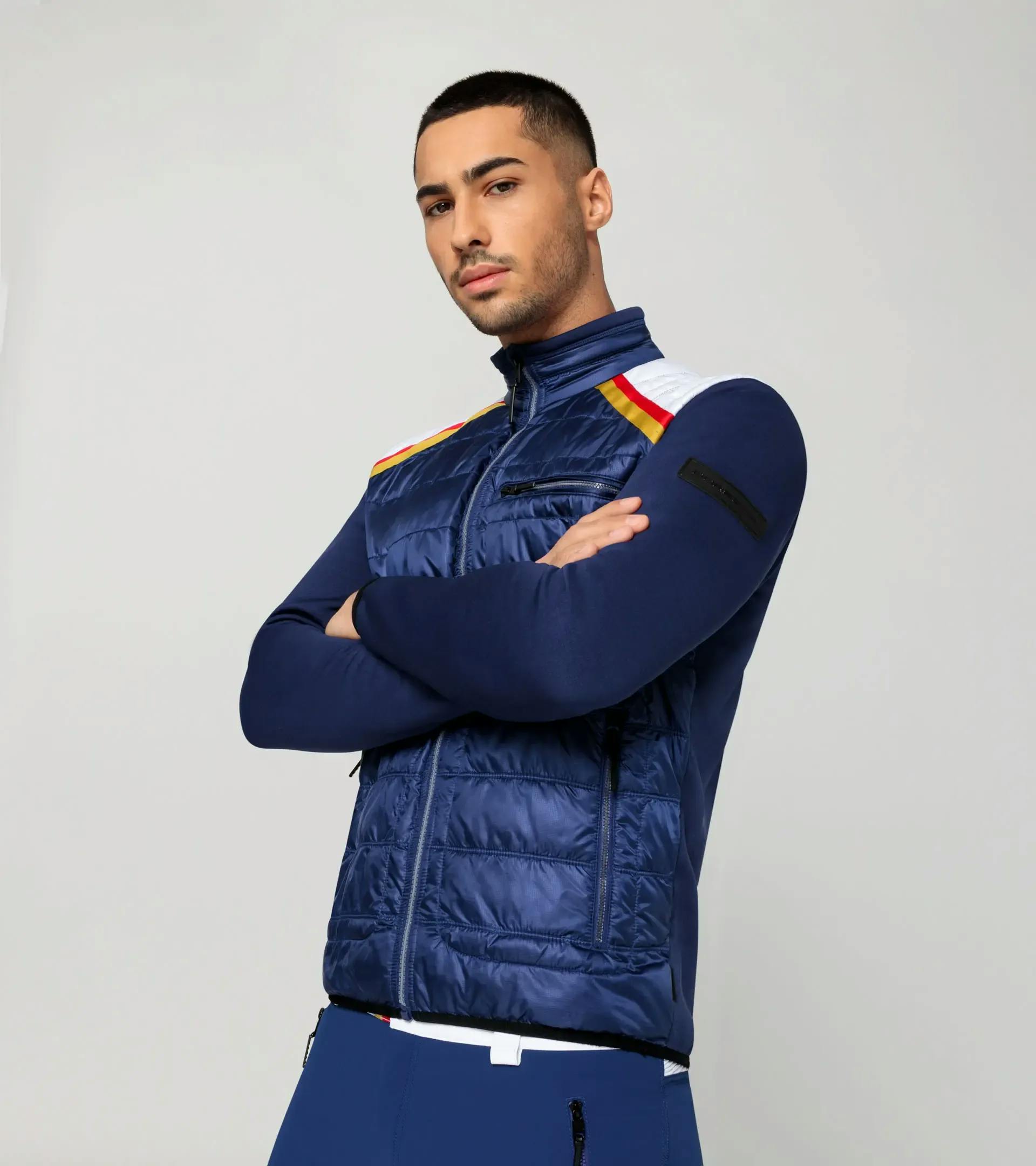 Cosa succede quando si incontrano due giganti della velocità? Proprio così: precisione, prestazioni e maestria si moltiplicano. La Dakar Capsule Collection di Porsche e HEAD porta tutto questo sulle piste da sci di tutto il mondo. La giacca midlayer PORSCHE HEAD Dakar di questa collezione limitata colpiscono per la struttura intelligente e per un design esclusivo ispirato alla Porsche 953. La giacca Second Layer esprime dinamismo anche quando sei fermo. La struttura ibrida Midweight si adatta perfettamente a ogni movimento grazie alla tecnologia Body-Mapped Brushed Power Stretch adottata per la schiena e le maniche. La parte anteriore trapuntata orizzontalmente realizzata nel materiale leggero Ripstop fornisce un calore adeguato grazie all'imbottitura calda e si caratterizza per la robustezza e l'insensibilità all'umidità. L'esclusivo comfort è completato dal colletto rialzato morbidamente foderato, dai polsini elasticizzati sulle maniche e sull'orlo e dalle cerniere leggere YKK VISLON® sul davanti, sul taschino sul petto e sulle tasche laterali.