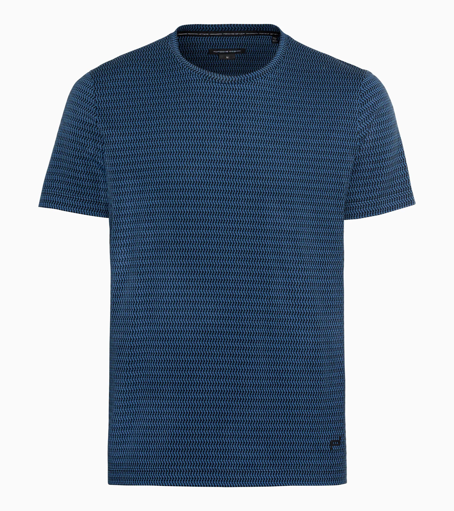 T-shirt sportiva da uomo dal design minimalista con girocollo. Tessuto jacquard su misura in cotone con motivo tecnico a quadretti pixelati in colori a contrasto.