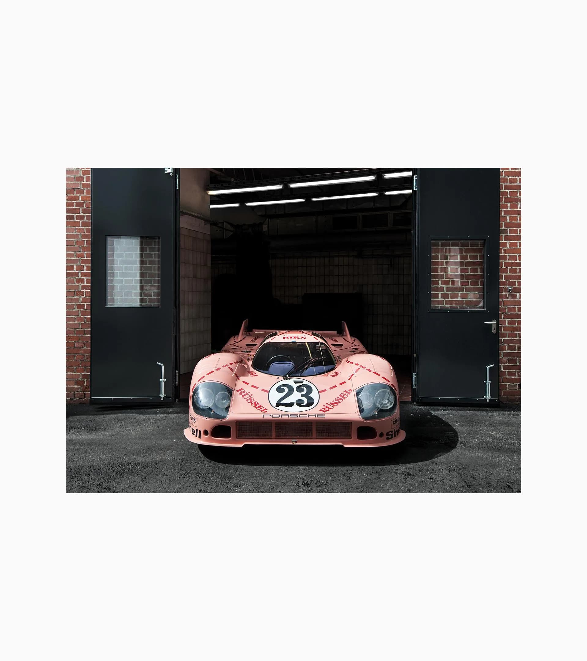 Bello da vedere non solo sul circuito, ma anche appeso alla parete: il set di poster 917 «Maialino rosa», composto dall`esclusivo poster da corsa «Pink Pig back on Track» e da un soggetto dedicato alla leggendaria vettura da corsa rosa.