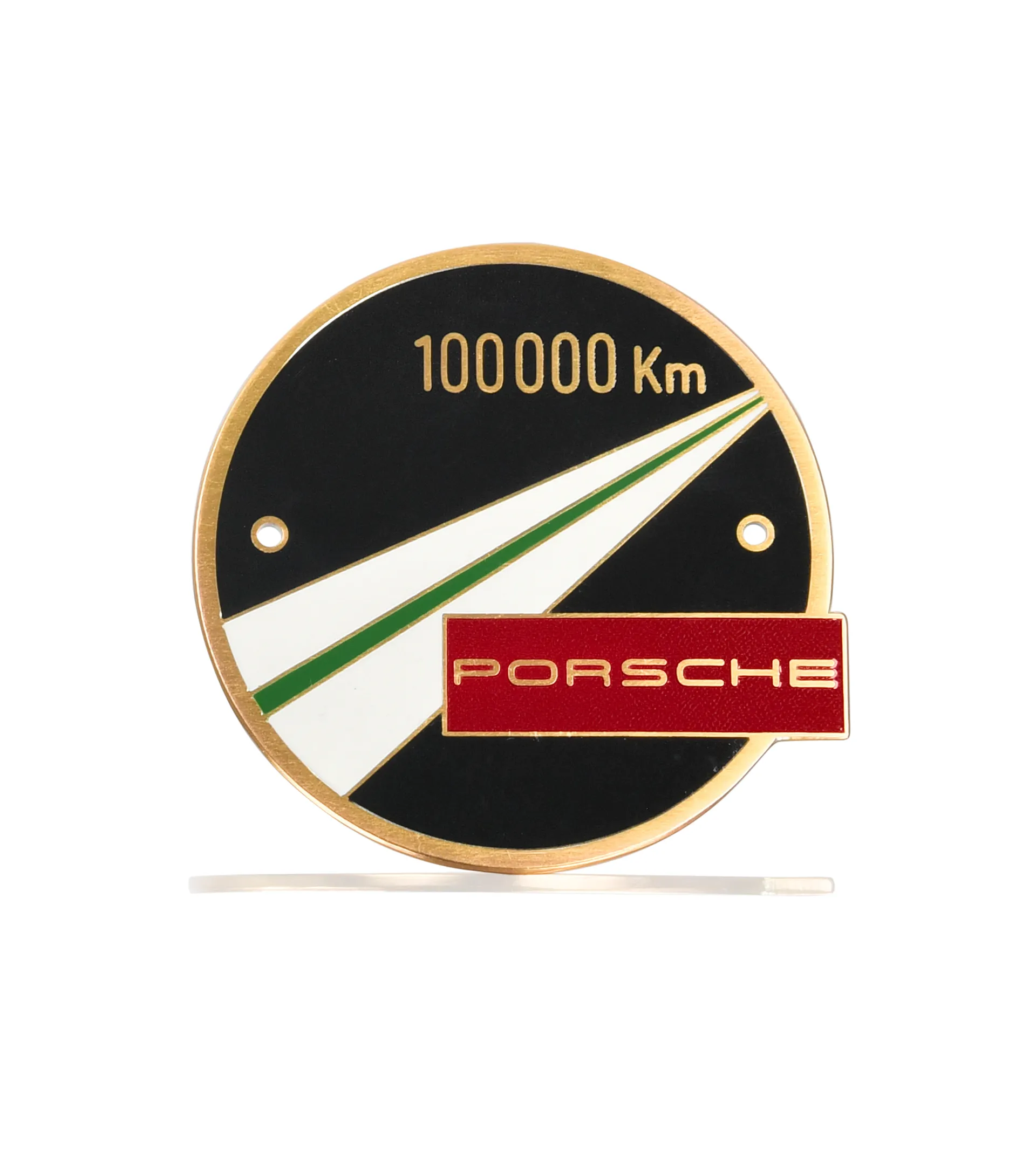 Targhetta 100.000 Km; può essere utilizzata per tutte le Porsche 356 dall'anno modello 1948 al 1965, Porsche 914 dal 1970 al 1976 e Porsche 911 dal 1965 al 1989