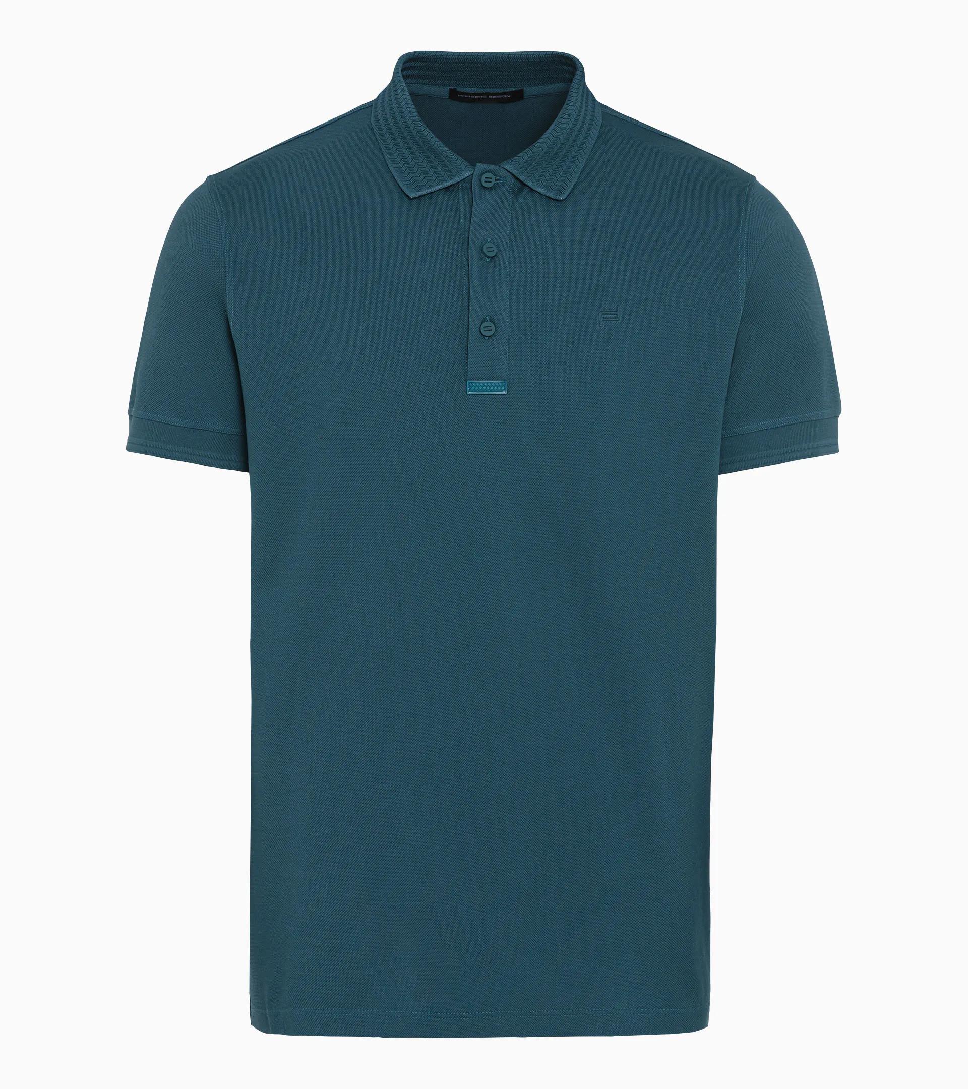 Un esclusivo capo basic: la polo ispirata al tessuto high-tech in acciaio inossidabile della leggendaria Porsche Design Tec Flex Pen. Il colletto con la sua caratteristica struttura cattura tutti gli sguardi per poi dirigerli sui bottoni gommati e lucidi e sul porta occhiali da sole gommato all'estremità dell'abbottonatura. Accanto, il simbolo PD imbottito e inciso aggiunge un altro tocco particolare e sottolinea l'alta qualità del tessuto.
