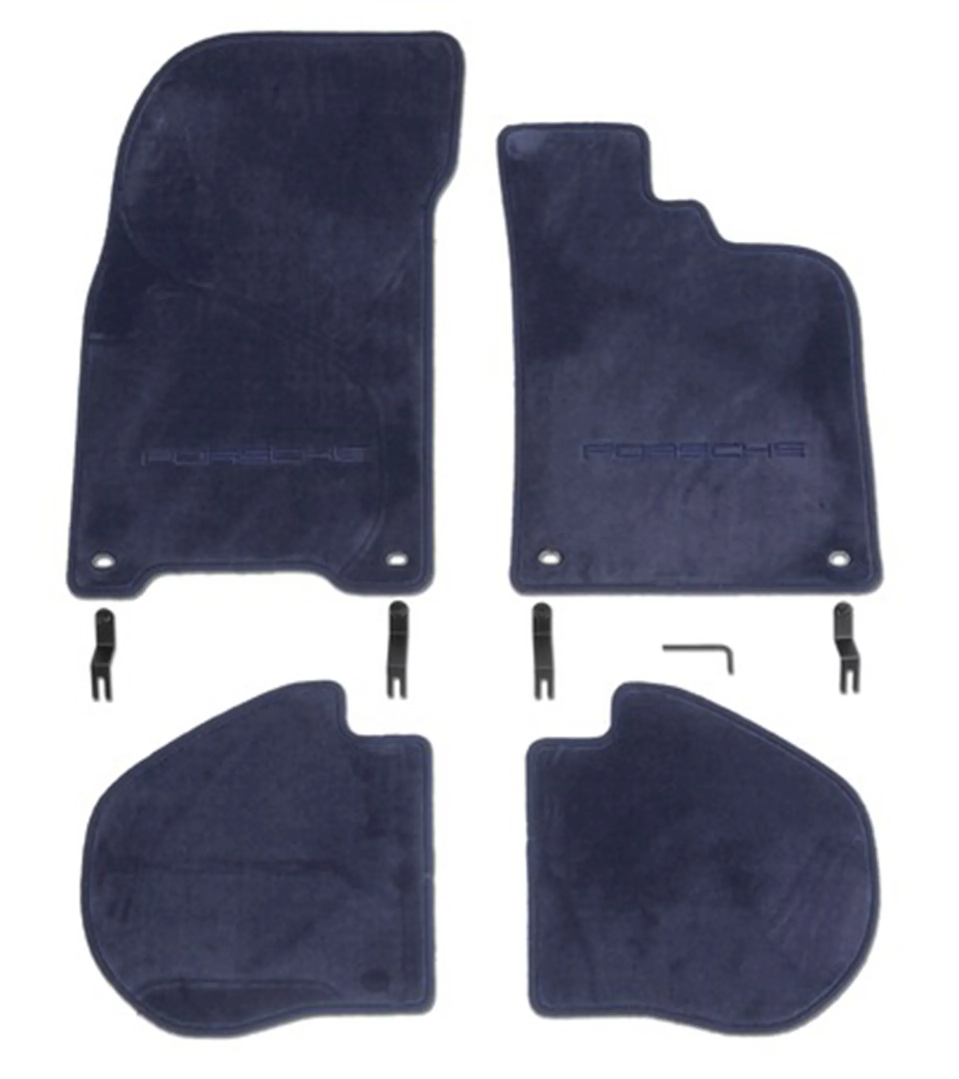 Set of four floor mats in cobaltblue for right-hand-drive vehicles, including fastening materials; suitable for Porsche Carrera 964 and 993 from years of construction 1989 to 1998 with Tiptronic gearbox.