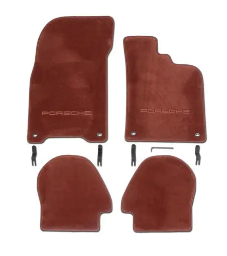 Set of four floor mats in Chestnut Brown for right-hand-drive vehicles, including fastening materials; suitable for Porsche 964 and 993 from years of construction 1989 to 1998 with Tiptronic gearbox.