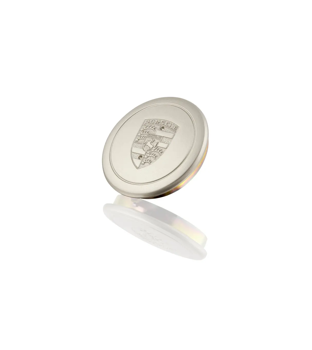 White Gold Metallic hub cap for internal diameter of 71 mm with Porsche crest.