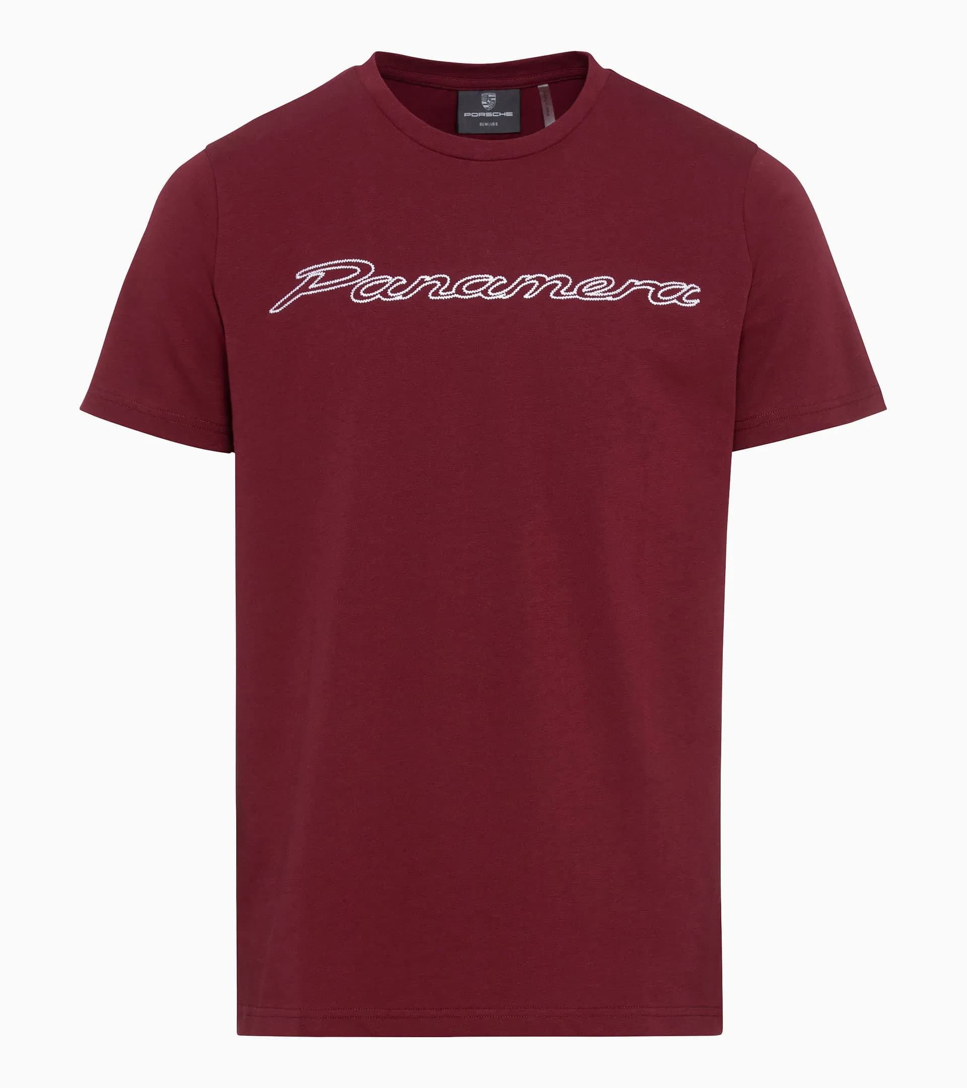 Unisex short-sleeved T-shirt.Crew neck.Embroidered with 'Panamera' lettering.