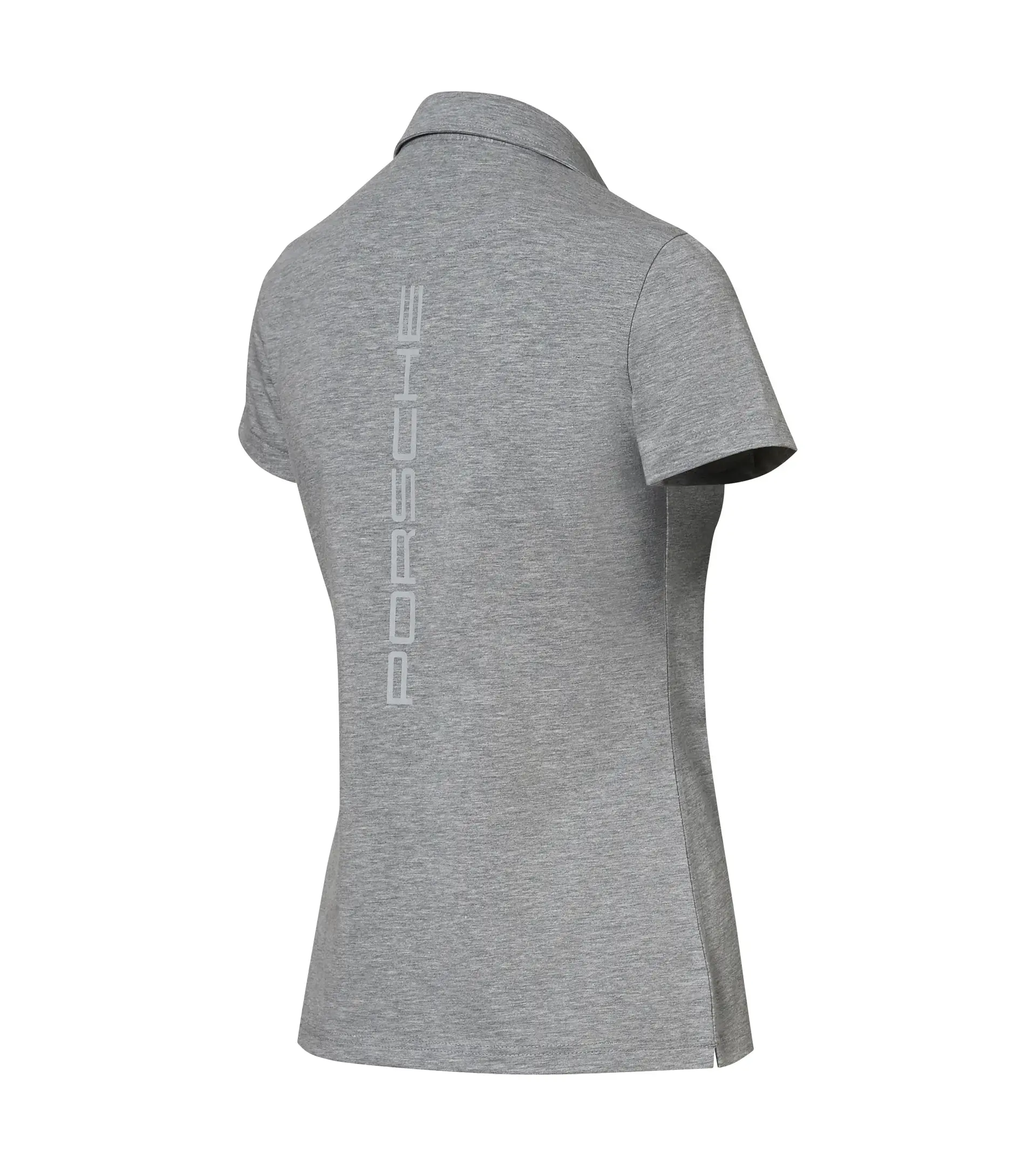 Comfortable polo shirt in jersey fabric with three buttons, "PORSCHE MOTORSPORT" signet and tonal, vertical "PORSCHE" logo on the back.