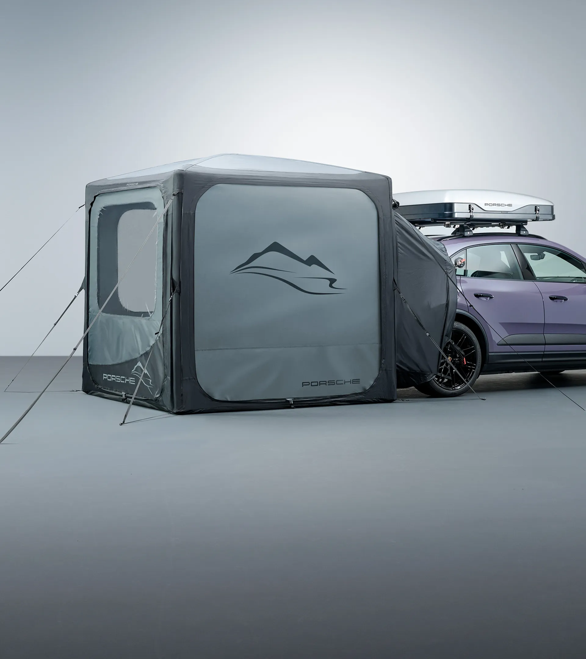 To je možné díky boční stěně bez oken, kterou lze připevnit na všechny strany Vašeho stanu Pavillon. A je to velmi rychlé a snadné, protože stěnový prvek lze snadno upevnit pomocí integrovaného systému zapínání pomocí zipů. Kromě většího soukromí nabízí prvek také ochranu před povětrnostními vlivy a je to inteligentní způsob, jak si poskládat svůj domov v přírodě tak, jak si přejete. Díky černošedému barevnému pojetí a siluetě hory jako grafickému prvku pavilon dokonale ladí se střešním stanem. V kombinaci se střešním stanem nabízí pavilon ještě více možností využití a vždy poskytuje stylové útočiště.