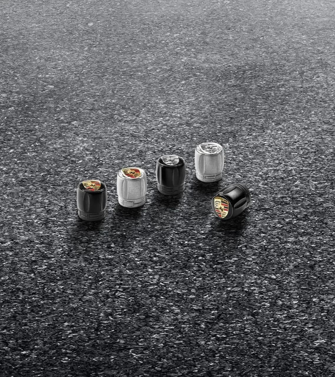 Ozdobná pouzdra na ventily s barevným znakem Porsche